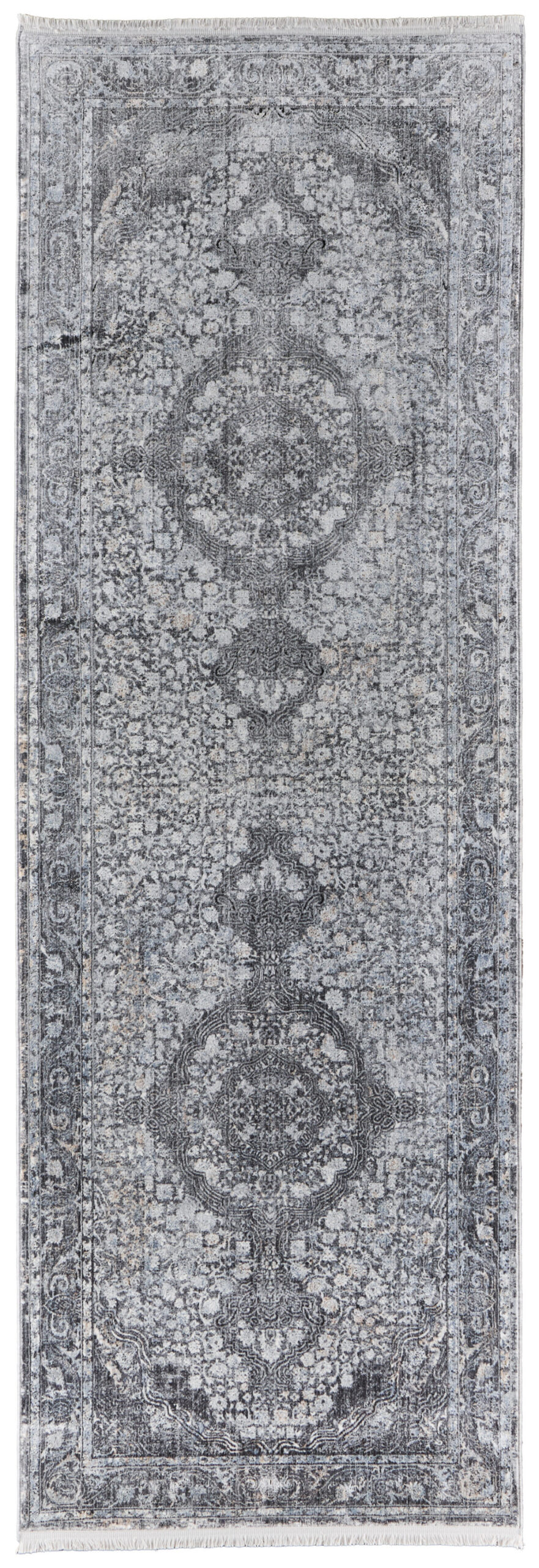 Add some artistry to your room with this 12-foot gray and silver oriental power loom worn faded runner rug. This runner shaped rug features a oriental design in gray and silver to give it visual interest. A classic shape marries with good looking design for your space place this area rug against a hardwood or tile floor and it will enliven your living space with style and sophistication. 32-inch H x 144-inch W x 0.22-inch D