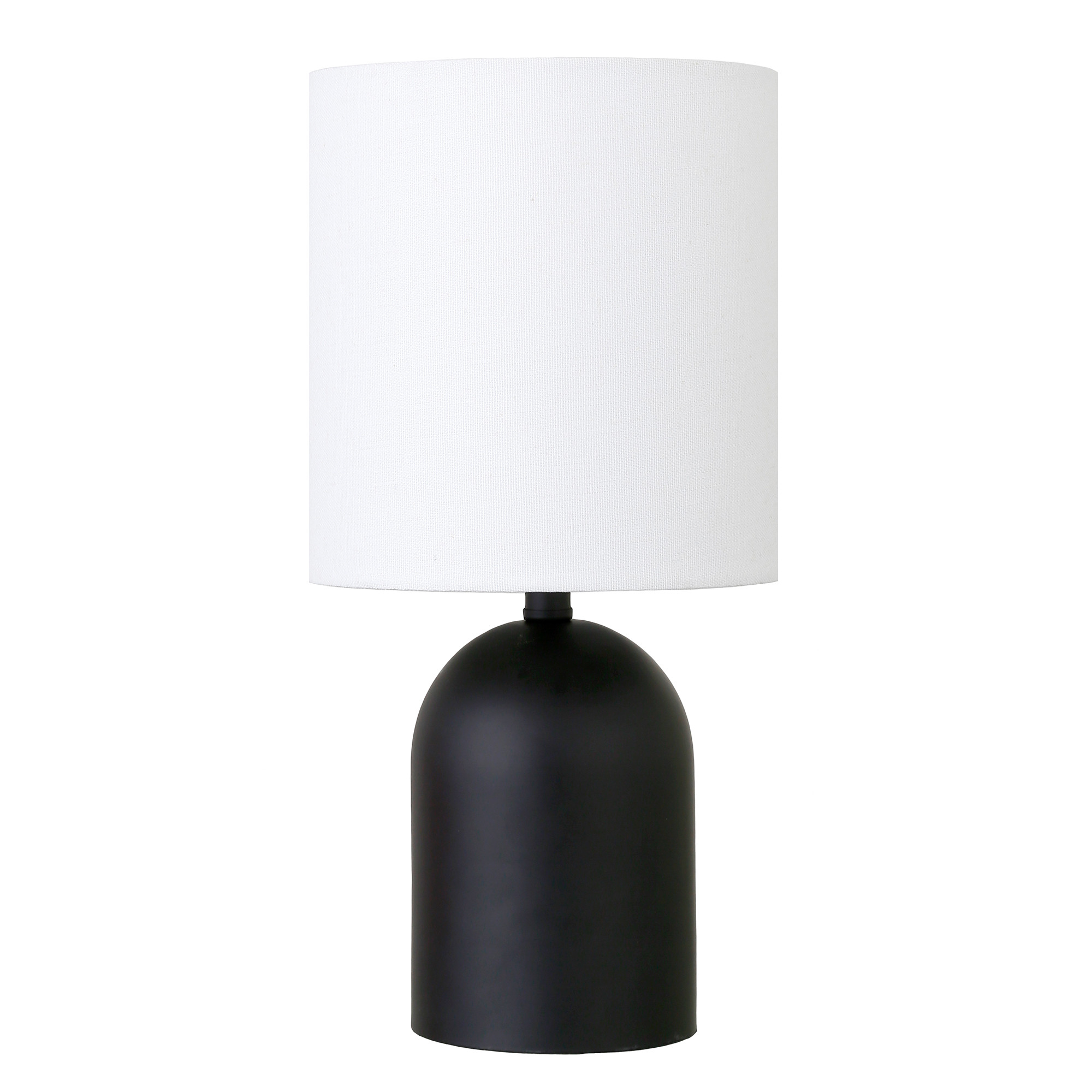 Add a bright anchor to your room with this 13-inch black metal cylinder table lamp with white drum shade. A gorgeous black metal base brings just the right amount of pizzazz to this fabulous lamp. Includes a white fabric, drum shaped shade, making this a fashionable piece that will complement most any interior. This standard table lamp is designed to provide general lighting to the area. The light that this lamp throws is soft and warm to elevate the look of most any space in your home. The perfect lamp to create just the right natural and soothing light in your space. 13.25-inch H x 6-inch W x 6-inch D