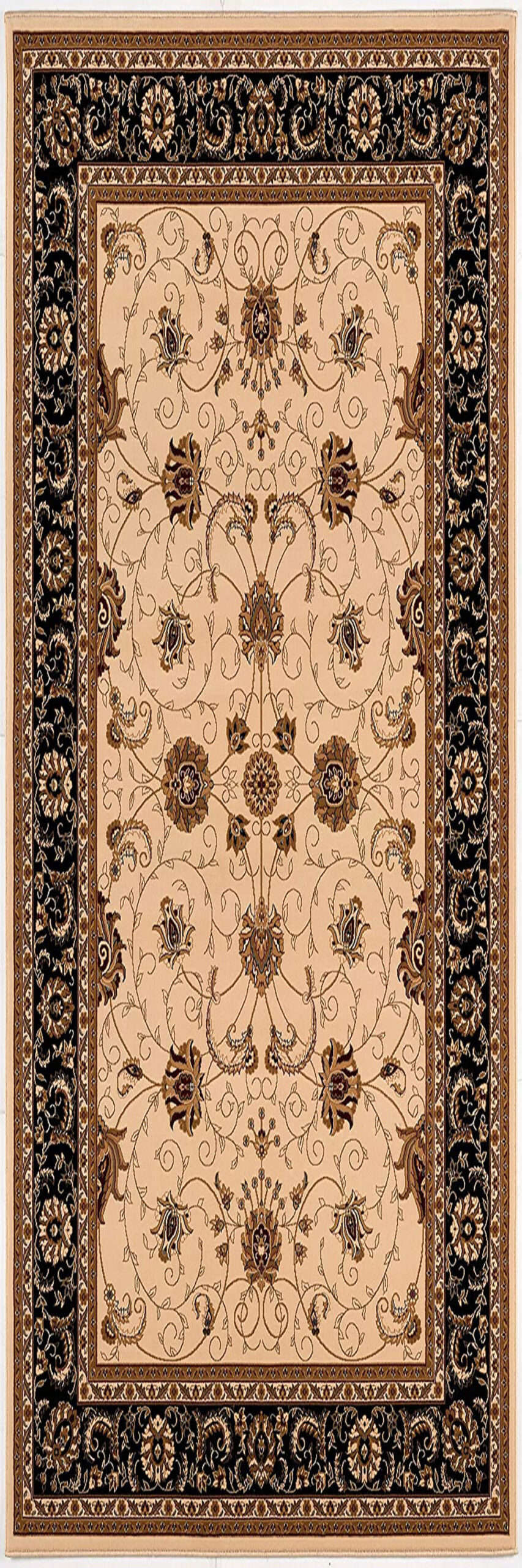Add great coloration and comfortable texture to your space with this 15-foot black and ivory oriental runner rug. Built to last, this rug crafted from olefin fibers is known for its durability and long lasting appeal. Rugs are a great way to showcase your style, hide imperfections, warm your home and reduce noise. This rectangular shaped rug features a abstract design that will add a functional and decorative accent to your space. This transitional style runner makes a great accent for the hallway, in front of cabinets, in the laundry room, or any other space you need a narrow and long rug. 32-inch h x 180-inch w x 0.6-inch d.