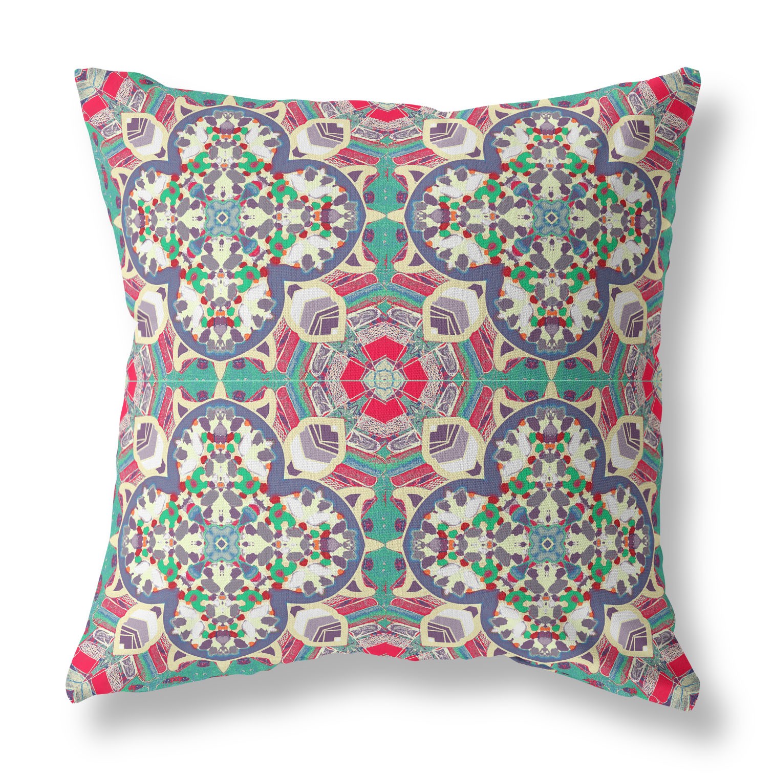 Invigorate your abode with the bright hues of this eye-catching Gray Pink Cloverleaf Boho Suede Throw Pillow and watch your space become the bohemian nest you always dreamed of. The bright pink tones create a perfect harmony with the cool-toned gray, blue, and jade cool-on the rosette-like motif, making this throw pillow the essence of coastal bohemian flair. This blown pillow is crafted from premium-quality suede fabric which is characterized by its soft and smooth surface texture for a delicate feel. With a polyester filling insert as soft as the clouds, the blown and closed pillow is perfectly suited for you to rest your head on. Fashioned with luxurious yet durable suede material, the cushion gives a premium feel with a lustrous sheen. Turn your home into the epitome of boho bravura with the pastel hues of this beautiful throw pillow. 16” x 16” x 5”