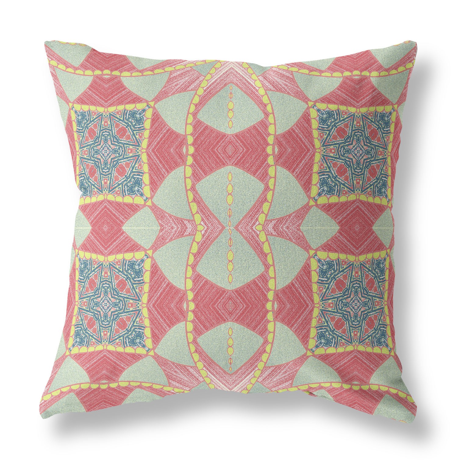 Enjoy the playful vibe of this Red Yellow Cosmic Circle Boho Suede Throw Pillow that exhibits joyful tones in a boho-chic fashion. The dusty red shade of the base is embellished with geometric motifs in sage and blue highlighted by yellow cosmic accents, giving a joyful essence to the pillow. The smooth texture of the appealing suede fabric is sure to add a luxurious touch to the piece while making the pillow highly durable with a soft hand. This pillow is blown and closed with a sturdy yet soft polyfill insert for a plush and fluffy look while maximizing comfort every time you lean on it. Make your living room look and feel more inviting with this stunning decorative pillow flaunted on the sofa, chair, or couch. 16” x 16” x 5”