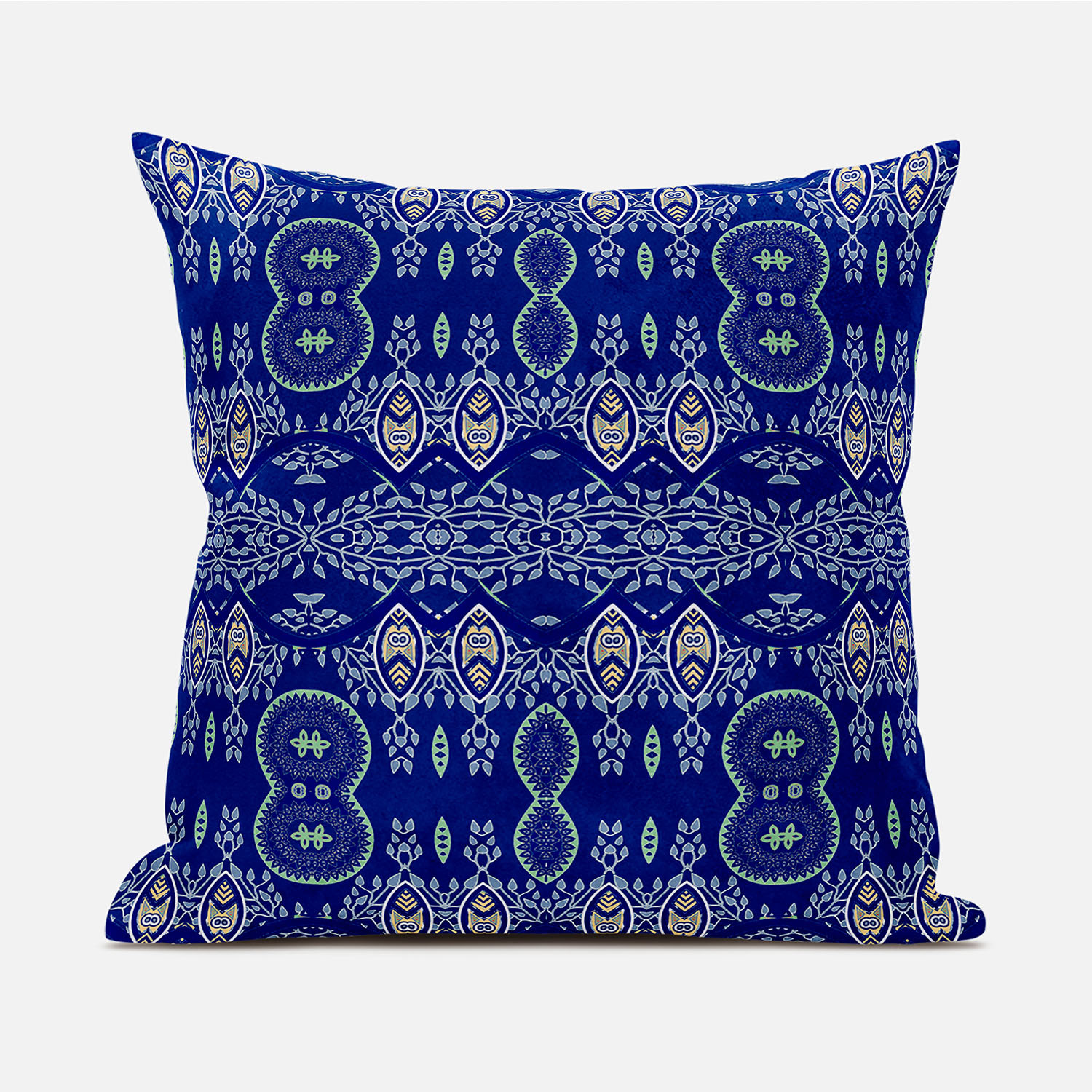 16″ X 16″ Navy Blue Broadcloth Paisley Zippered Pillow