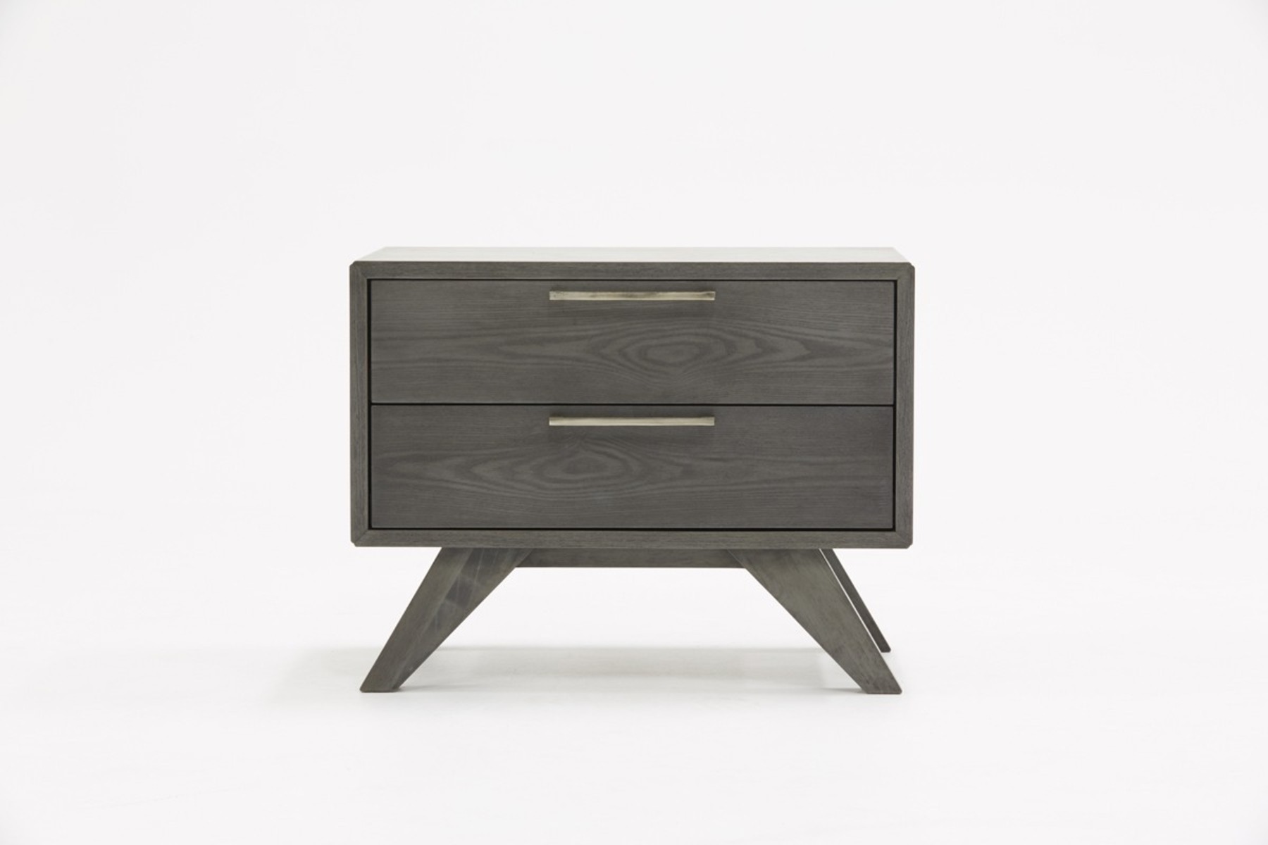 Good looking design and practical styling meet to form this 18-inch solid wood and wood two drawer nightstand. Sturdy and durable construction from solid wood ensures this trusty bedside table is built to last. This piece has 2 drawers for your storage needs. The unsung hero of the bedroom, this nightstand is perfect for keeping a glass of water, lamp, alarm clock, jewelry, and more, close by and easily accessible. 18-inch h x 24-inch w x 16-inch d.