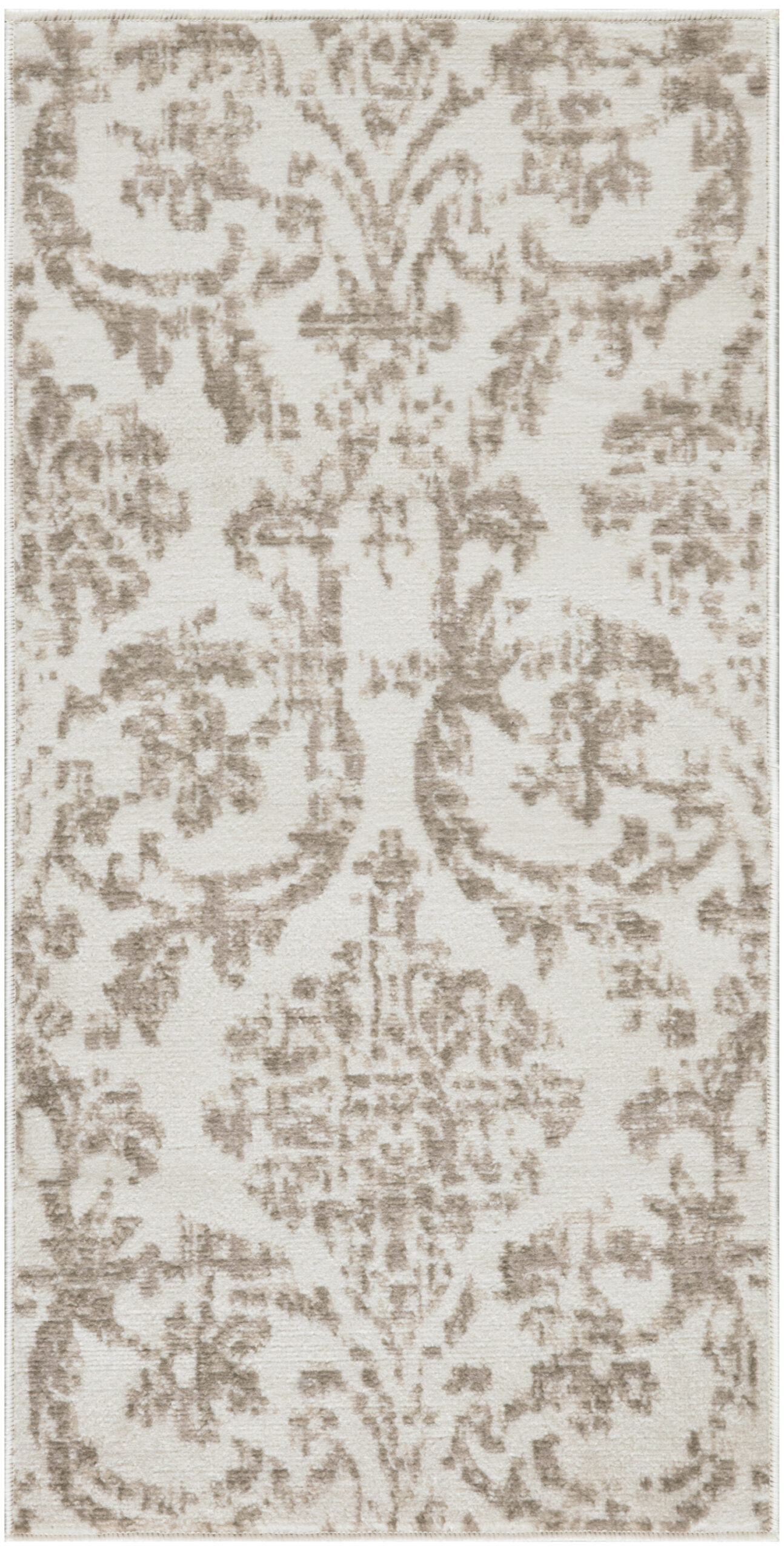 Add some artistry to your room with this 2-foot x 4-foot beige and ivory damask distressed area rug. Ideal for spaces with kids and pets, this rug is stain resistant to help repel dirt and spilled liquids. Built to last, this rug crafted from polypropylene fibers is known for its durability and long lasting appeal. Rugs are a great way to showcase your style, hide imperfections, warm your home and reduce noise. This smaller sized, transitional styled rug is just what you need for your walkway, bedside, in front of door, cabinet, refrigerator, or chair. 24-inch h x 48-inch w x 0.5-inch d