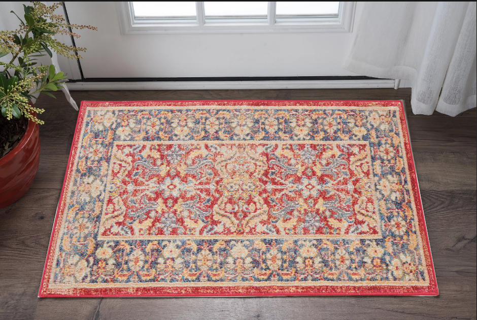 This 2-foot x 4-foot blue and red floral distressed non skid area rug, is a great way to add warmth to a room. Built to last, this rug crafted from polypropylene and polyester blend fibers is known for its durability and long lasting appeal. Rugs are a great way to showcase your style, hide imperfections, warm your home and reduce noise. This smaller sized, transitional styled rug is just what you need for your walkway, bedside, in front of door, cabinet, refrigerator, or chair. 24-inch h x 48-inch w x 0.5-inch d