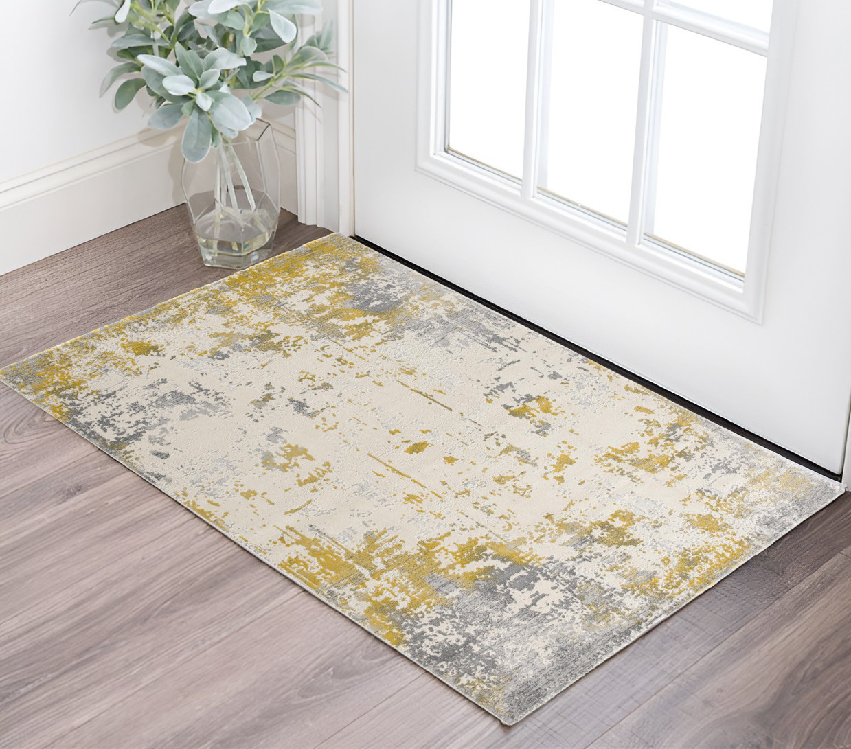 2′ X 4′ Gold And Gray Abstract Area Rug