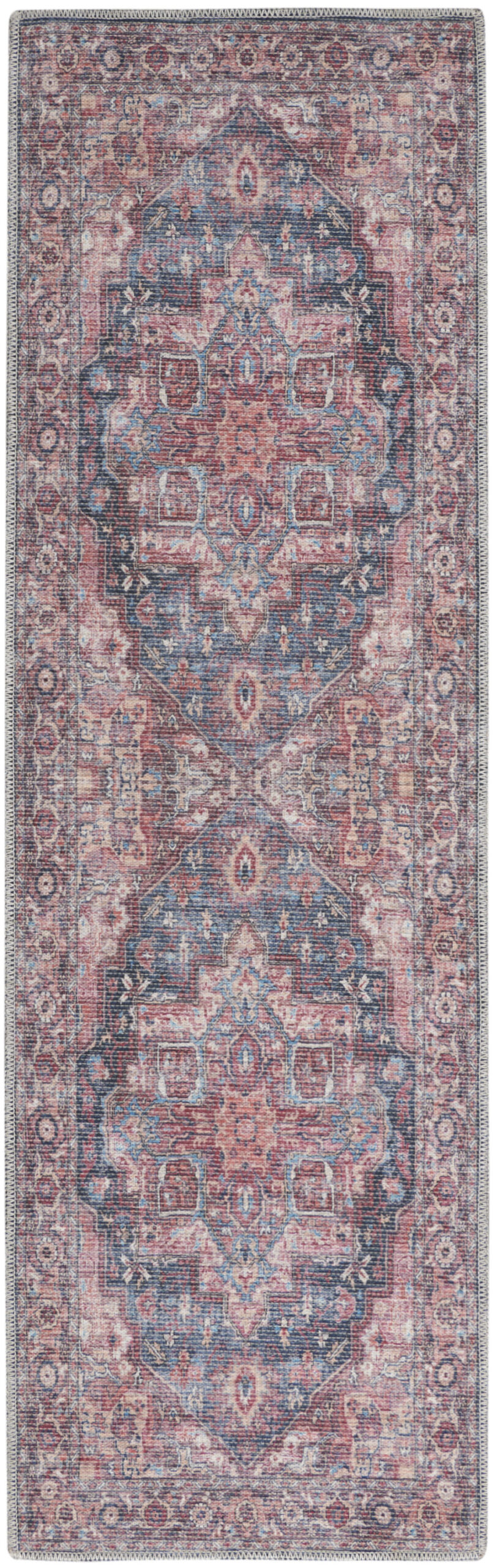 2′ X 6′ Red Oriental Power Loom Distressed Washable Runner Rug