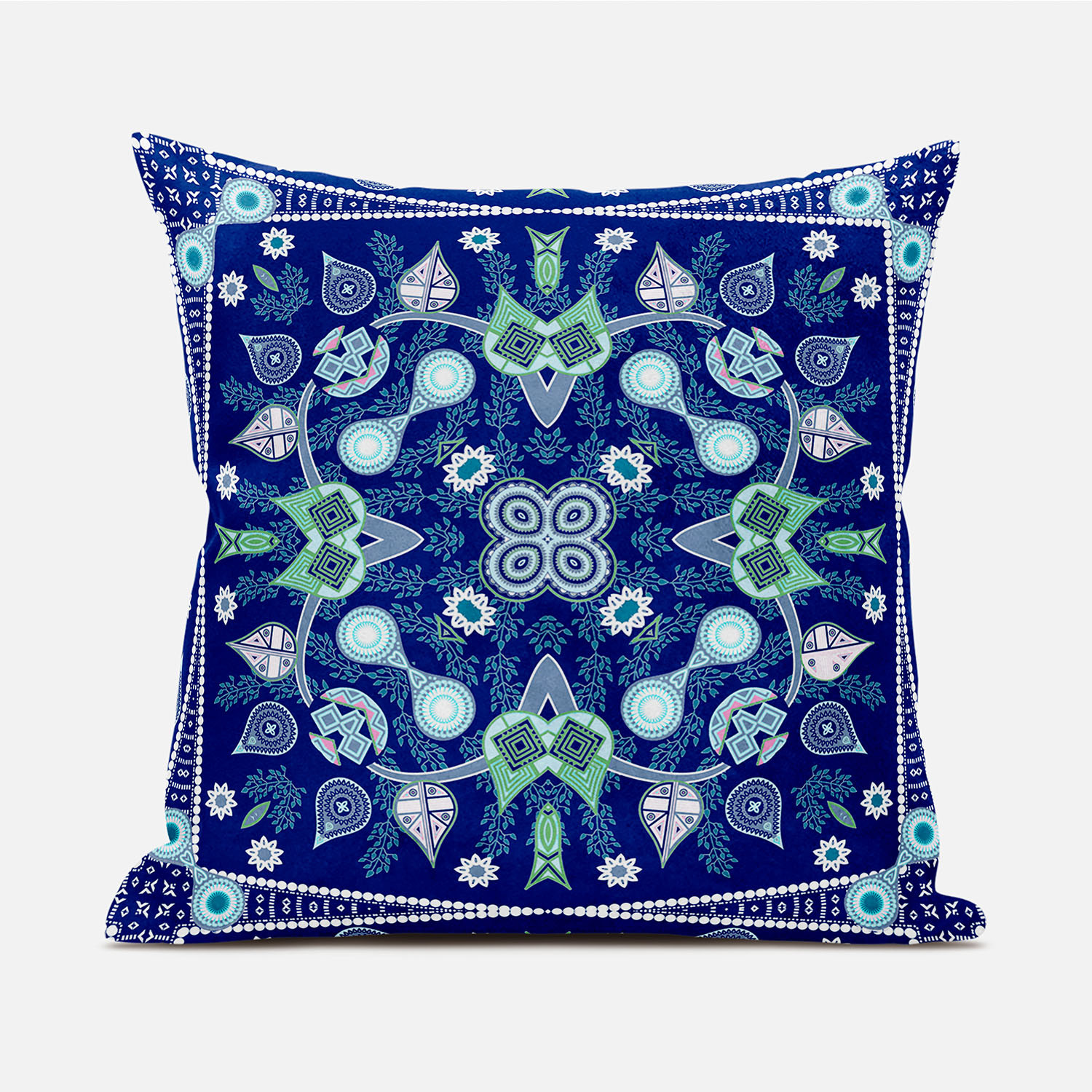 20″ X 20″ Blue and Green Broadcloth Paisley Zippered Pillow