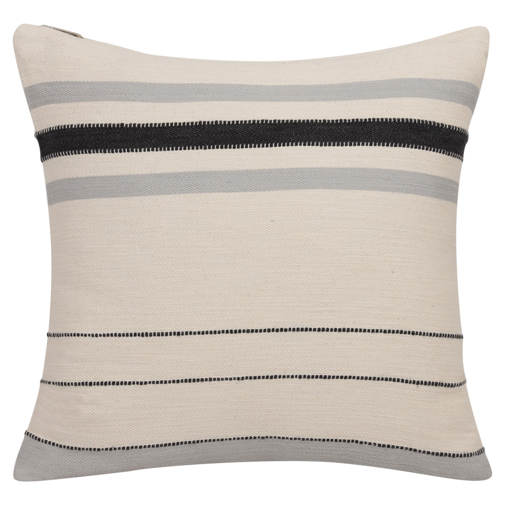 Unique and decorative, this comfortable 20-inch x 20-inch ivory striped cotton zippered pillow will leave a lasting impression. This ivory and gray colored decorative pillow is made from high grade 100% cotton that makes it super soft to the touch and long lasting. Super soft and built to hold its shape, this polyfill pillow is a great option. Decorative throw pillows not only add color and dimension to your space but can be comfy and supportive when you are lounging and cuddling as well. A great decorative accessory for your favorite chair, to accent your sofa, or to use as part of your bed ensemble. 20-inch H x 20-inch W x 4-inch D
