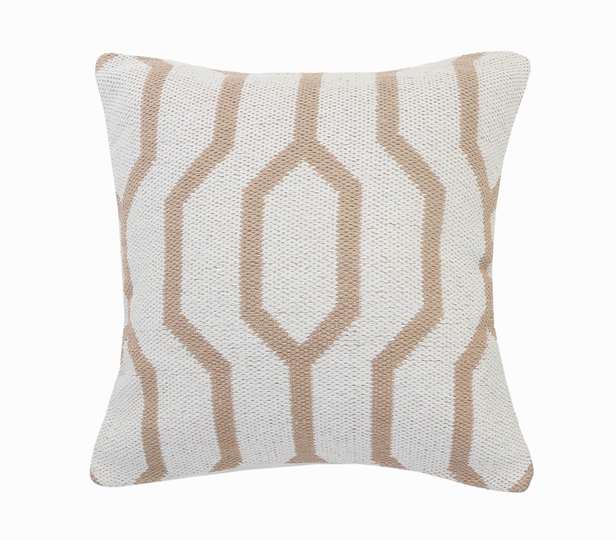 20″ X 20″ White And Tan 100% Cotton Geometric Zippered Pillow
