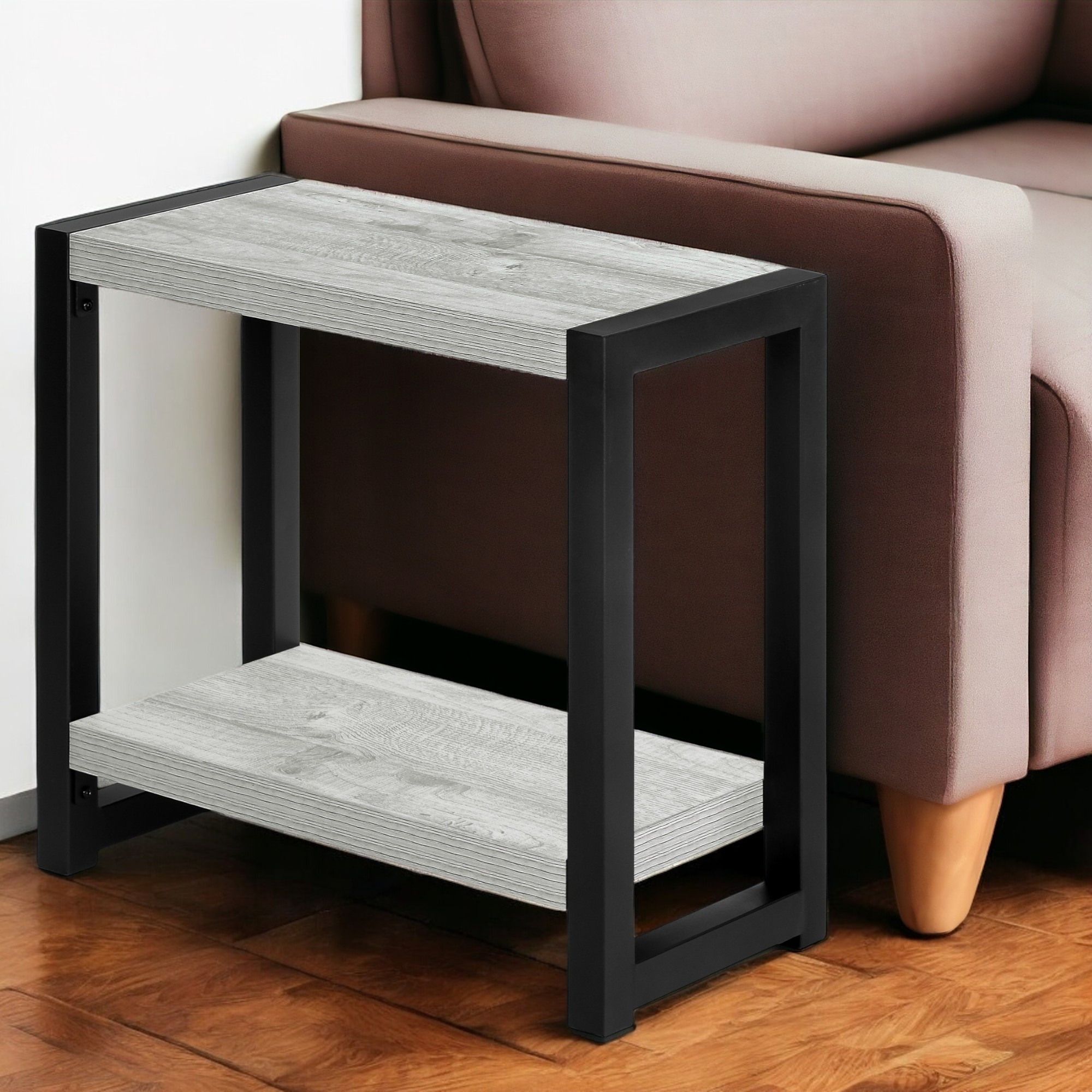 22″ Gray And Black Wood And Metal Frame End Table With Shelf