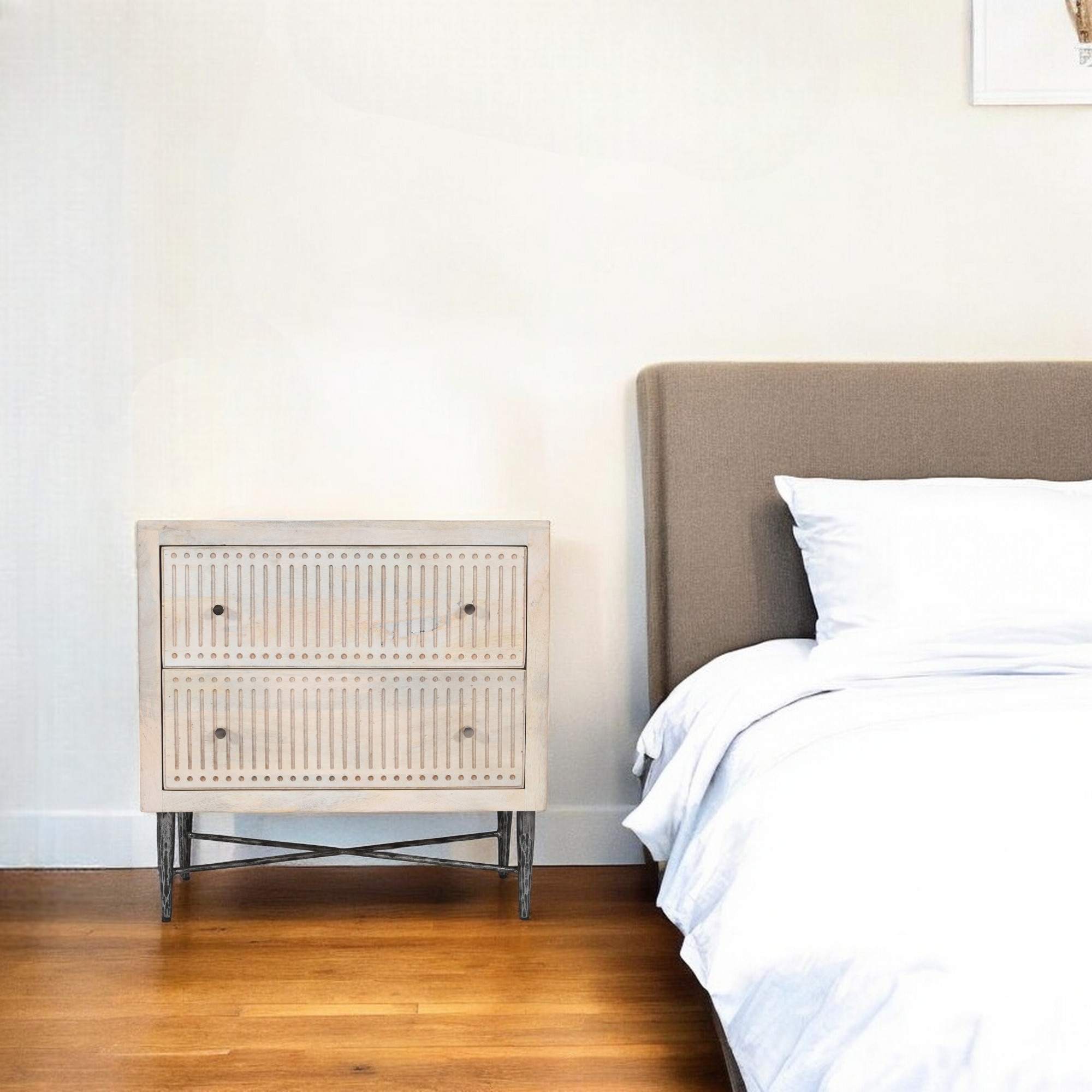 28″ Ivory Solid Wood Two Drawer Nightstand