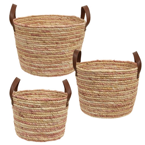 3/Set – Woven Natural and Rose Seagrass Baskets