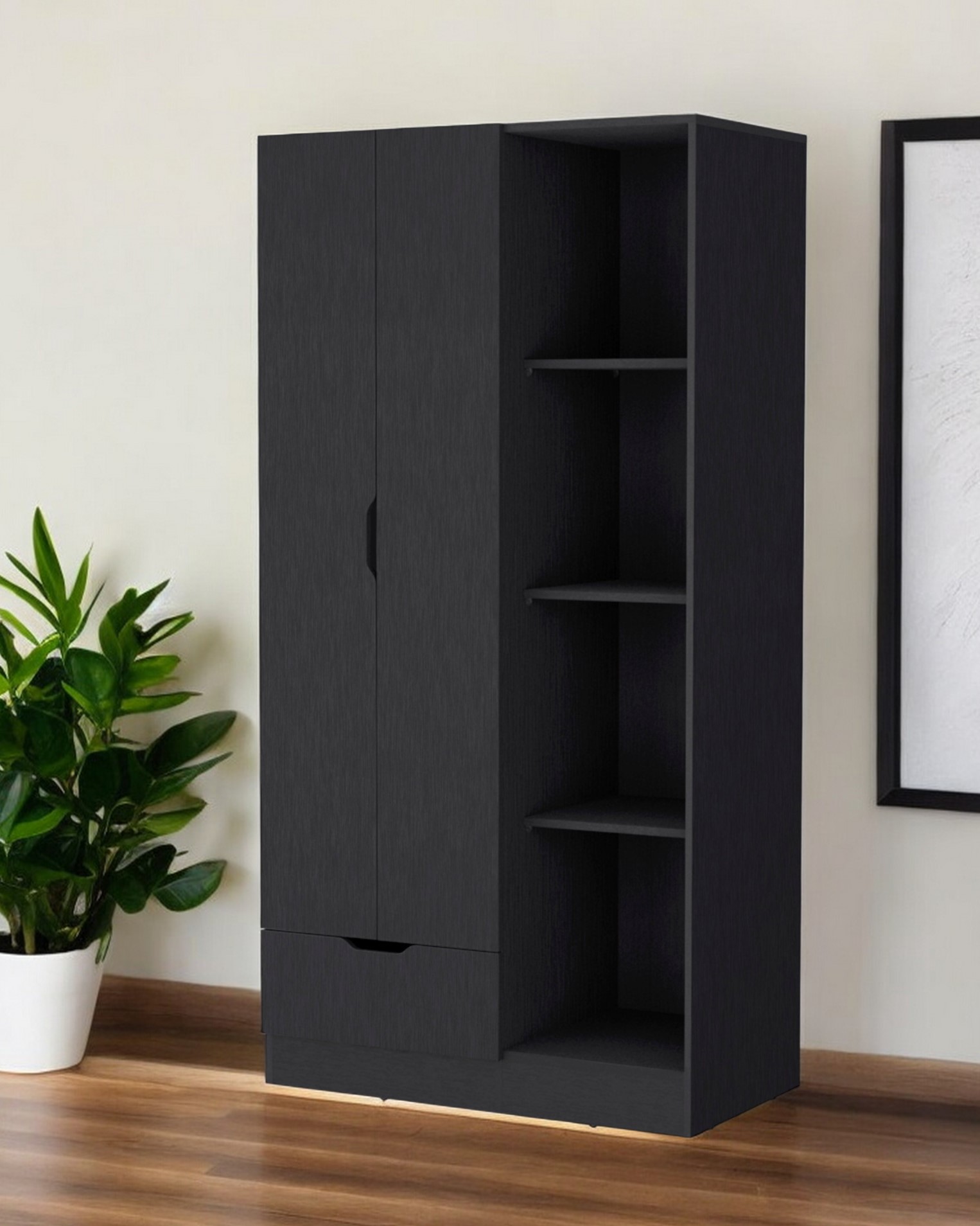 Add personality to your bedroom style and a feeling of coziness with this 35-inch black drawer combo dresser. Versatile in use, this combo dresser is equipped with both drawers and doors for all your storage needs. Its a high quality piece, made from high grade manufactured wood. The black coloration of this piece gives it an updated, and modern edge. 71.1-inch H x 35.43-inch W x 19.68-inch D