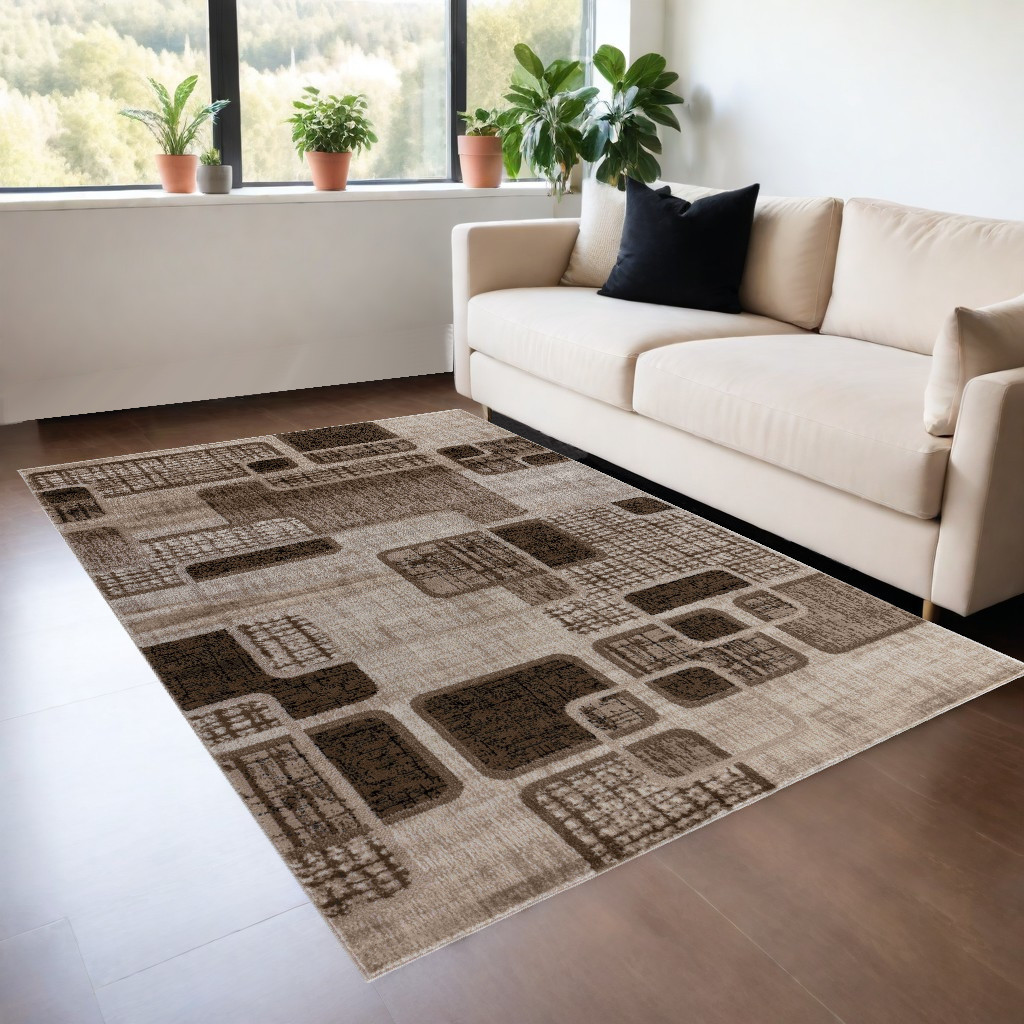 This 4′ x 6′ brown geometric area rug, is a great way to add warmth to a room. This rectangle shaped rug features a geometric design in brown to give it visual interest. A classic shape marries with good looking design for your space Made in Turkey, this rug offers high quality combined with good looking designer sensibilities. Area Rugs help to give warmth and sense of home to your space. 0.3″ H x 47″ W x 67″ D