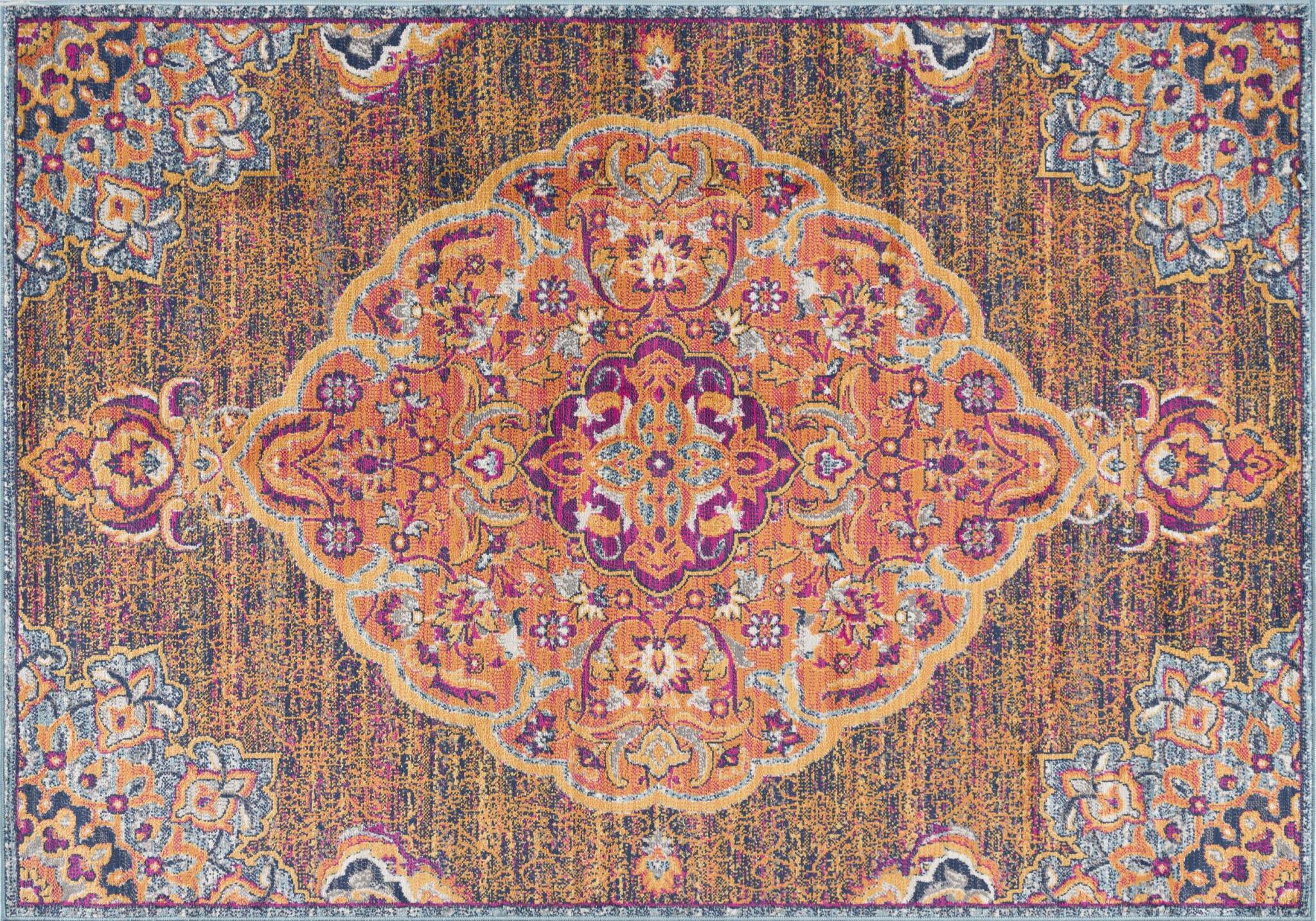 Encouraging an essence of rich traditional styling, this Rustic Orange Medallion Area Rug exhibits a blend of saturated hues to uphold a sense of extravagance into your living space. The exaggerated medallion in the center is intricately decorated with rustic orange, gold, magenta, and tints of blue on a multi-toned base for visual harmony. Ideal for indoor areas with heavy foot traffic, this rug is made in Turkey with 100% polypropylene that speaks of its durability and stain resistance to last long and retain its pristine look for ages. The low pile construction adds to a refined look offering a smooth surface texture with a lustrous effect that feels as luxurious as it looks. Flaunting warm-toned hues and traditional patterns, this alluring area rug will add a sense of energy and vibrance to your traditional home. 66” x 45” x 0.4”