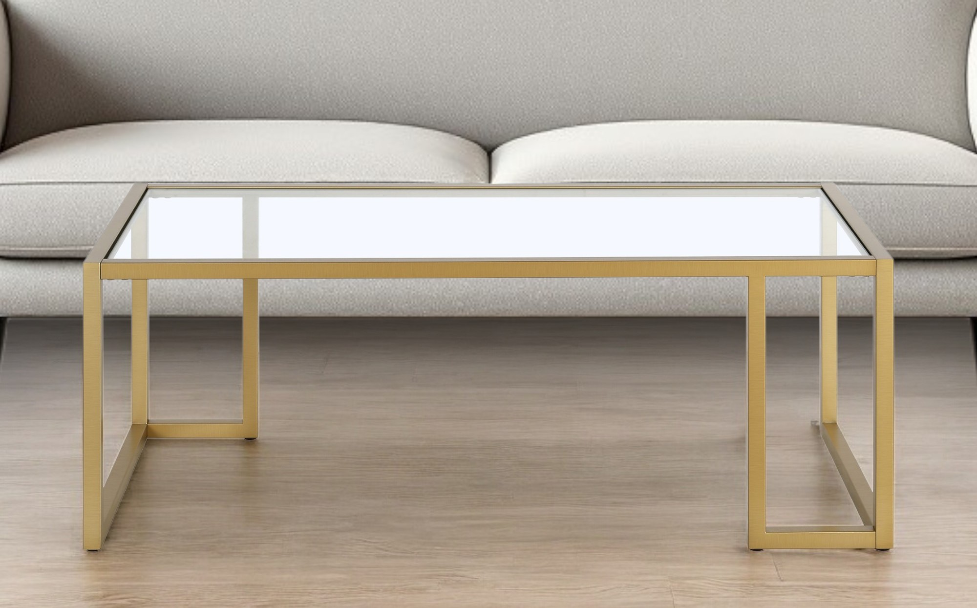 Add handsome, fashionable design to your living space with this 45-inch gold glass and steel coffee table. A gold coloration runs throughout this good looking steel and glass table. This rectangular table is an classic yet updated way to accent your room. If you’re looking for something that can fit into a living area, bedroom, or office, this coffee table is for you. This coffee table is the sturdy, reliable and stylish answer to your living room needs. 17-inch H x 45-inch W x 20-inch D