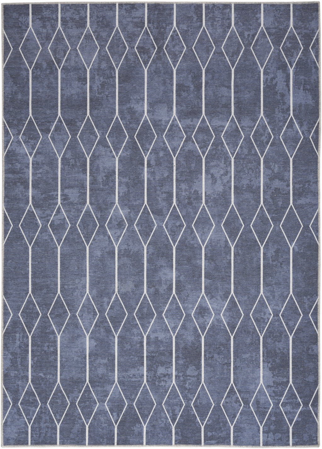 Add some artistry to your room with this 5-foot x 7-foot blue and ivory geometric power loom washable area rug. This rectangle shaped rug features a geometric design in blue and ivory to give it visual interest. A classic shape marries with good looking design for your space Place this area rug against a hardwood or tile floor and it will enliven your living space with style and sophistication. 0.28-inch H x 63.00-inch W x 87.00-inch D