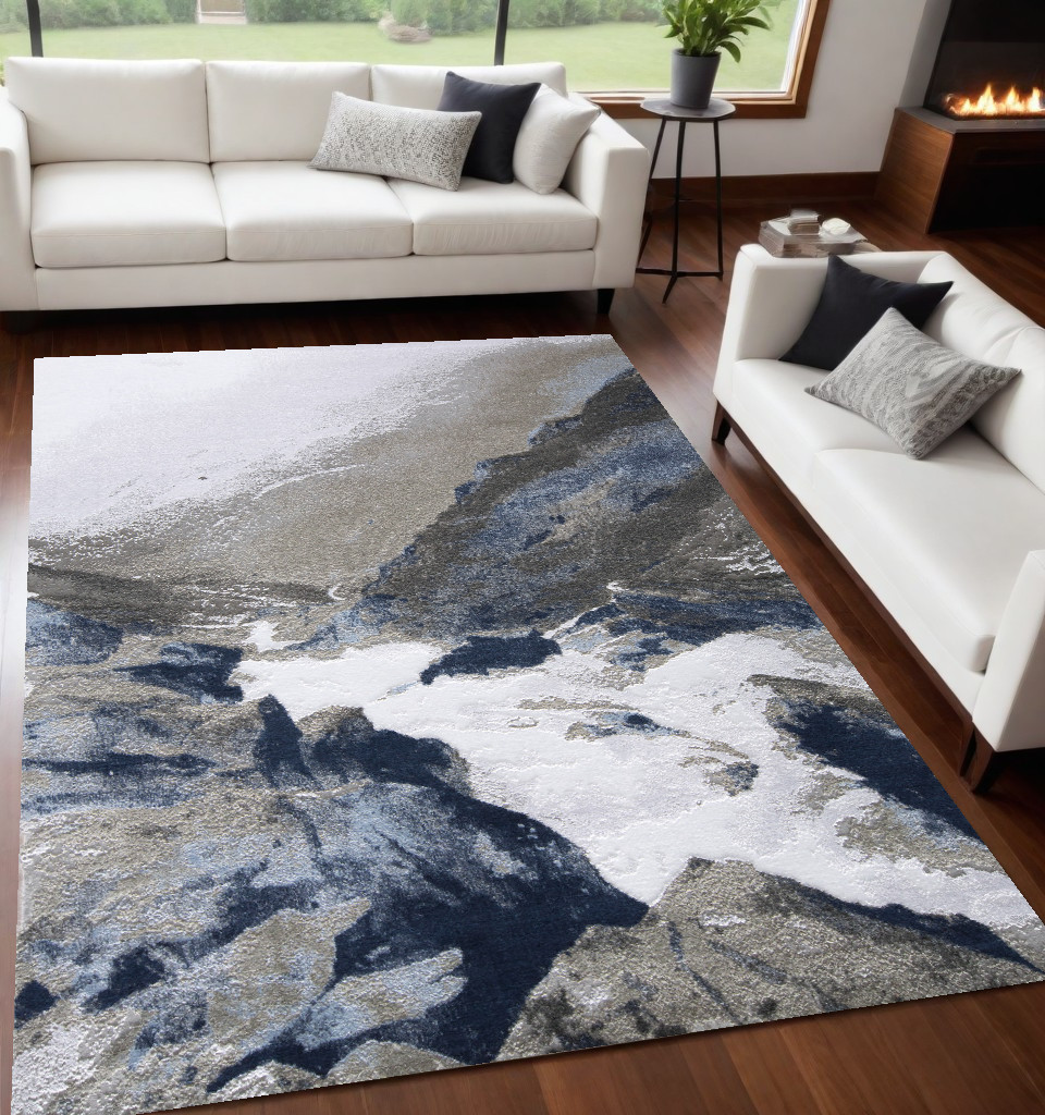 5′ X 7′ Blue Gray And White Abstract Stain Resistant Area Rug