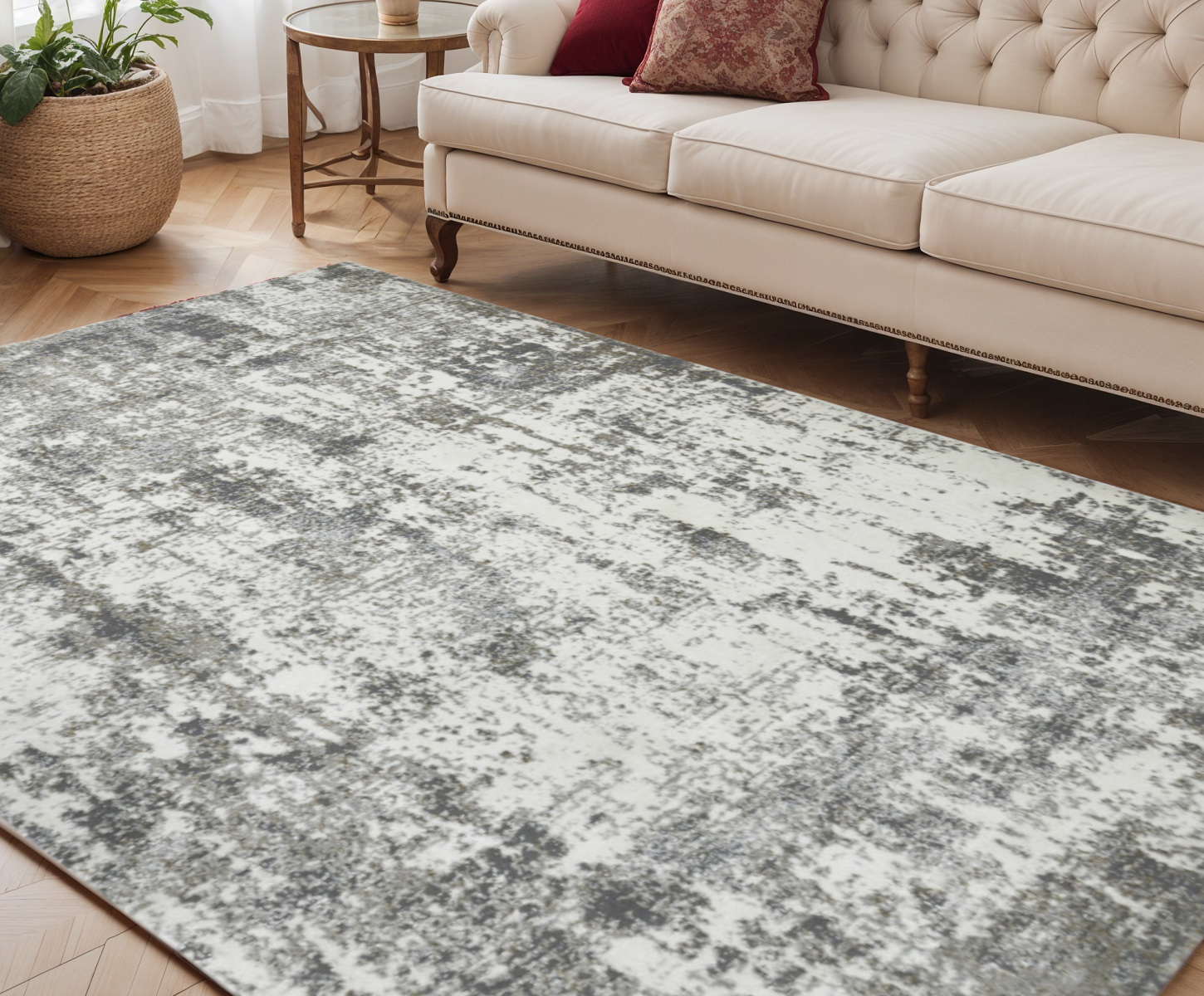 This 5-foot x 8-foot ivory and gray abstract area rug, is a great way to add warmth to a room. Built to last, this rug crafted from polypropylene and polyester fibers is known for its durability and long lasting appeal. Rugs are a great way to showcase your style, hide imperfections, warm your home and reduce noise. This larger sized, modern styled rug is ready to create a focal point or statement piece in your room. 63-inch h x 93-inch w x 0.39-inch d.