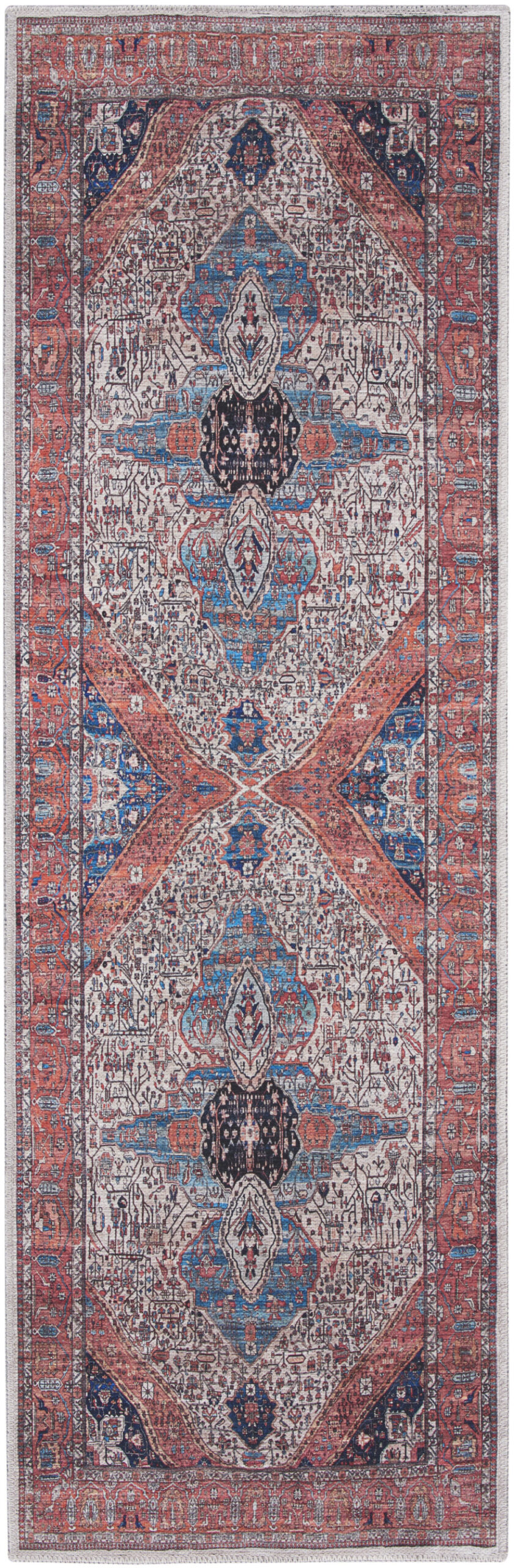 This 6-foot red and ivory oriental power loom distressed washable non skid runner rug, is a great way to add warmth to a room. This runner shaped rug features a oriental design in red and ivory to give it visual interest. A classic shape marries with good looking design for your space Place this area rug against a hardwood or tile floor and it will enliven your living space with style and sophistication. .25-inch H x 24.00-inch W x 72.00-inch D