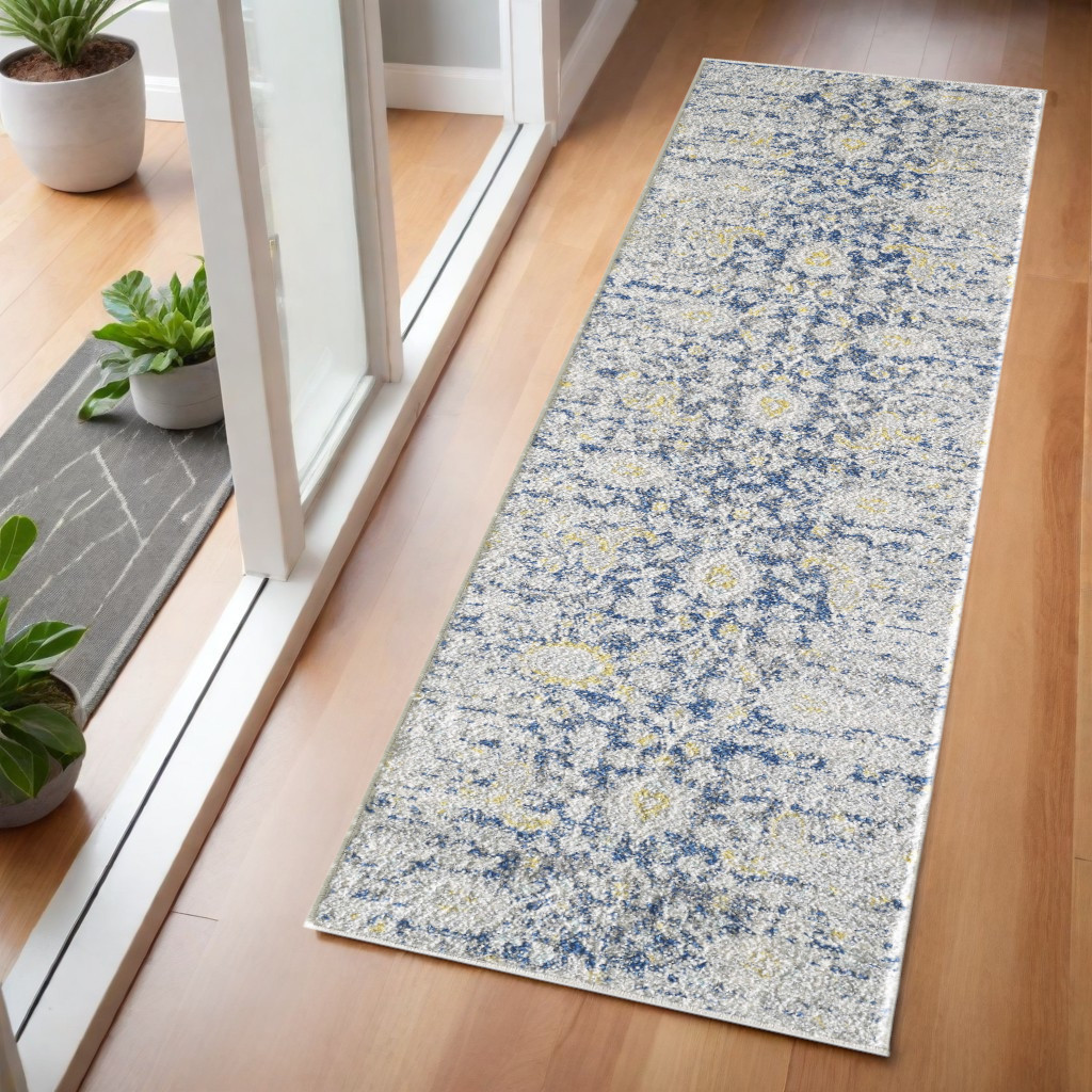Add great coloration and comfortable texture to your space with this 7-foot gold and gray floral runner rug. Built to last, this rug crafted from polypropylene fibers is known for its durability and long lasting appeal. Rugs are a great way to showcase your style, hide imperfections, warm your home and reduce noise. This rectangular shaped rug features a abstract design that will add a functional and decorative accent to your space. This contemporary style runner makes a great accent for the hallway, in front of cabinets, in the laundry room, or any other space you need a narrow and long rug. 24-inch h x 84-inch w x 0.5-inch d.