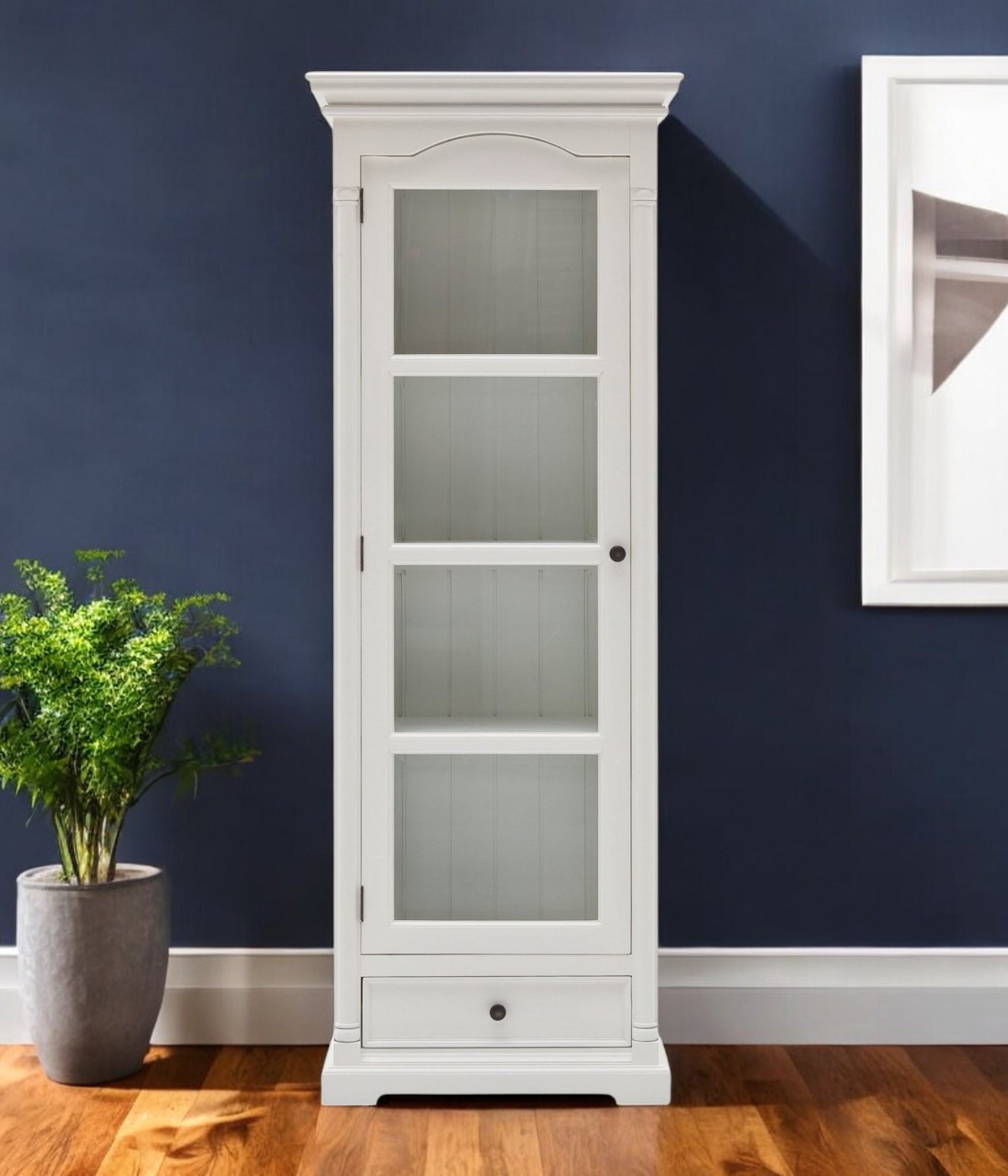 Add functional storage to your space with this 75-inch white solid wood pantry or storage closet. Crafted from durable solid mahogany, this pantry cabinet showcases a beautiful blend of style and functionality. The transitional design makes it a versatile addition to any decor, seamlessly fitting into both modern and traditional settings. The elegant white finish adds a touch of brightness to your kitchen or dining area, creating an inviting atmosphere. With its spacious interior, this cabinet provides ample room for all your pantry essentials, making organization effortless and efficient. Elevate your home with this stylish and practical storage solution. 74.8-inch h x 27.56-inch w x 17.72-inch d.