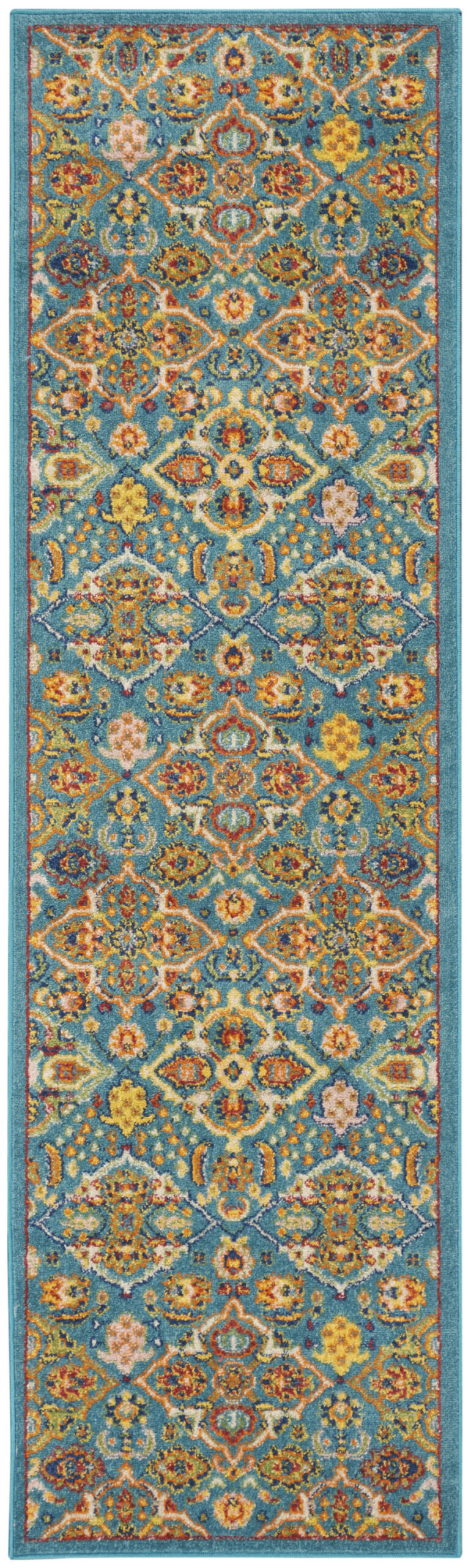 Add great coloration and comfortable texture to your space with this 8′ blue floral power loom runner rug. This runner shaped rug features a floral design in blue to give it visual interest. A classic shape marries with good looking design for your space This superior Turkish rug represents the highest quality and is built to last. Area Rugs help to give warmth and sense of home to your space. .25″ H x 27.00″ W x 90.00″ D