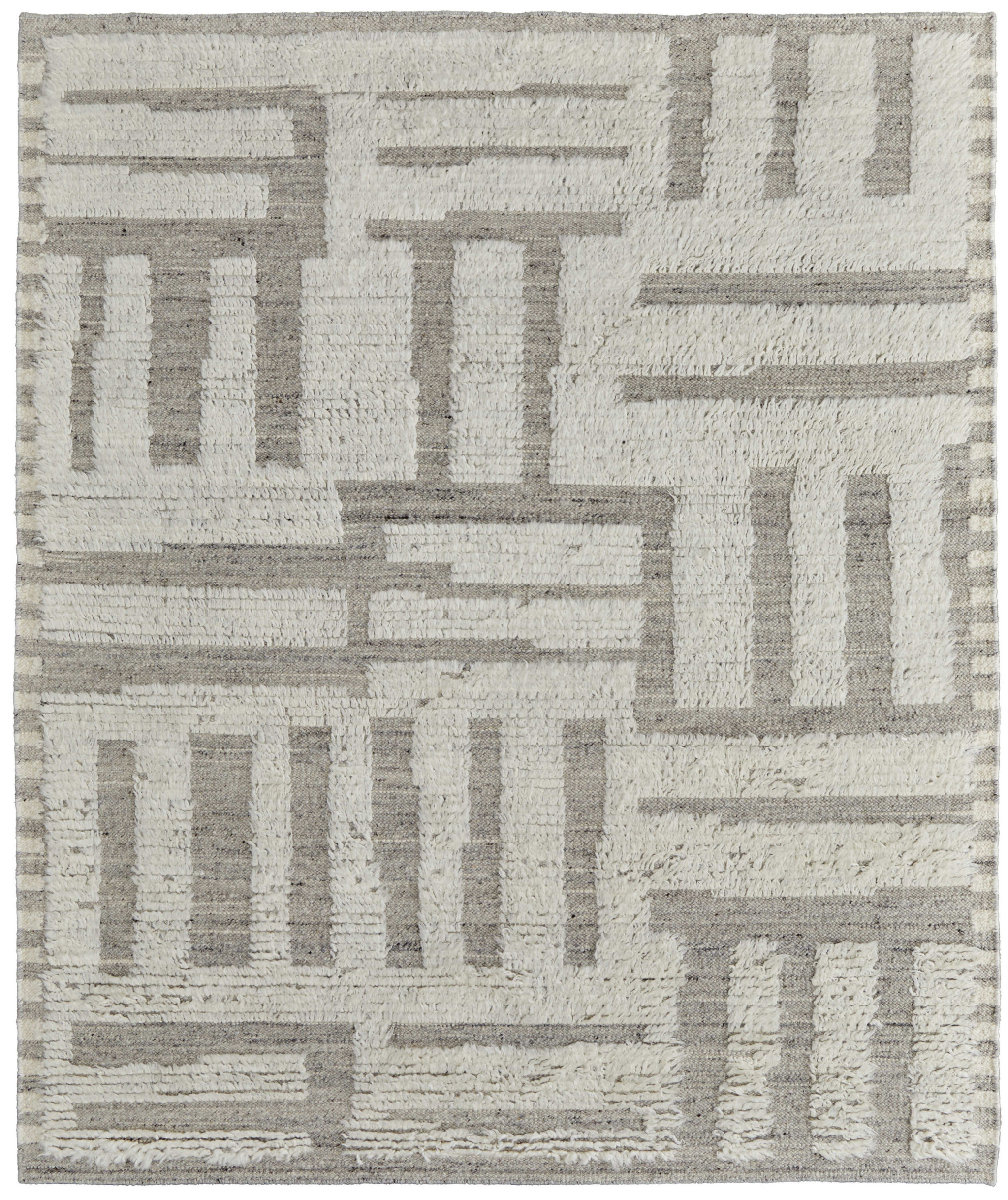 8′ X 12′ Gray and Ivory Wool Geometric Hand Woven Area Rug