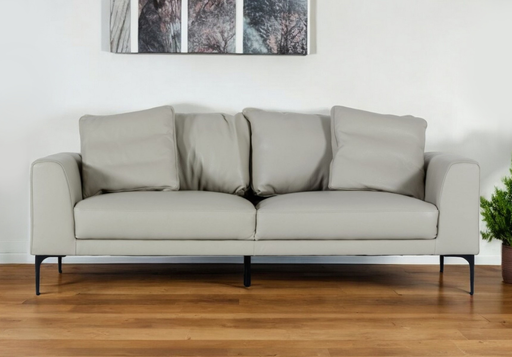 87″ Gray Genuine Leather Sofa With Black Legs