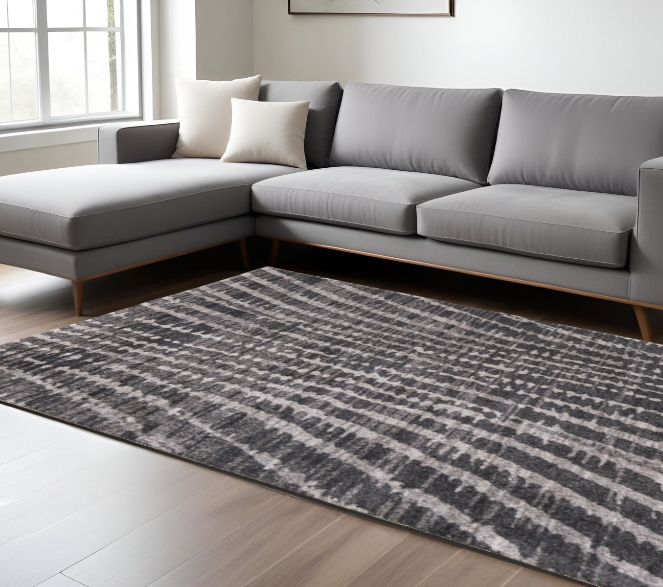 Add some artistry to your room with this 9-foot x 12-foot black gray and ivory abstract area rug. Ideal for spaces with kids and pets, this rug is stain resistant to help repel dirt and spilled liquids. Built to last, this rug crafted from polypropylene blend fibers is known for its durability and long lasting appeal. Rugs are a great way to showcase your style, hide imperfections, warm your home and reduce noise. This larger sized, industrial styled rug is ready to create a focal point or statement piece in your room. 108-inch h x 144-inch w x 1-inch d.