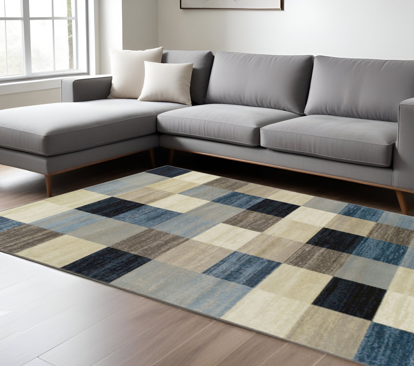 9′ X 12′ Majolica Blue Geometric Power Loom Stain Resistant Area Rug