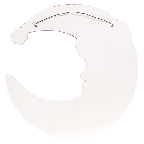 The Believe Santa Moon Wall Hanger is a whimsical wall hanging made from wood with wintry design. The hanger depicts a sleeping Santa in the shape of a crescent moon made of layered white, red, and ivory wood. A black script accent reads, “believe.” The back features a hidden hanging wire for easy wall display. Measures 15″ in diameter by .75″ deep.