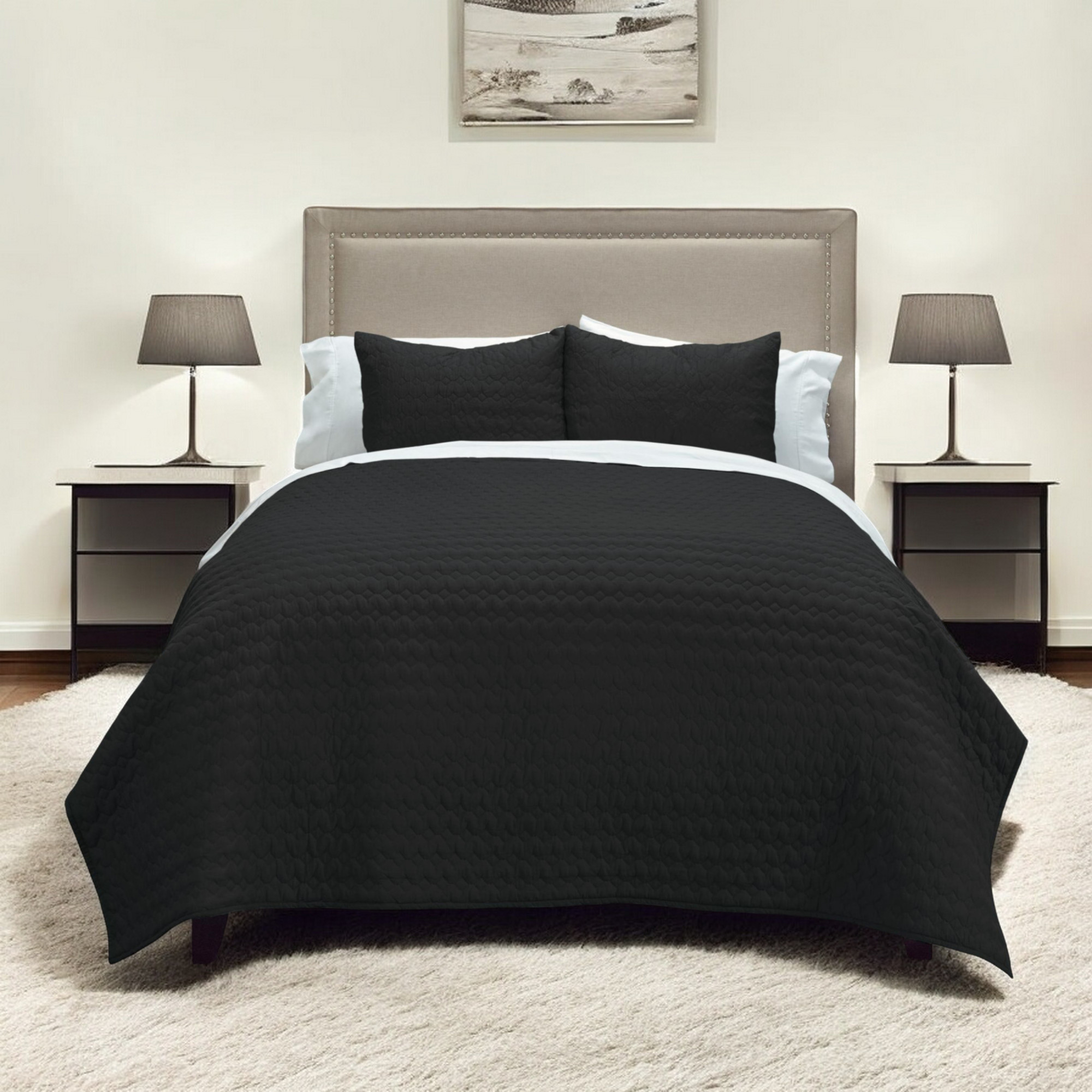 The black geometric twin quilt offers a stylish addition to your bedding collection. Crafted from soft cotton, this quilt is perfect for a cozy night’s sleep. Its transitional style enriches any bedroom decor, combining modern and classic elements seamlessly. Featuring a striking black geometric pattern, it adds a touch of sophistication to your space. This quilt is designed specifically for twin beds, providing a snug fit and comfort. With its lightweight construction, it is ideal for year-round use, making it a versatile choice for various seasons. Enjoy the perfect blend of aesthetics and practicality with this elegant bedding solution that enhances your personal sanctuary. The quilt is included, ensuring you have everything you need for a refreshing update to your room. 70-inch h x 86-inch w x 0.5-inch d.
