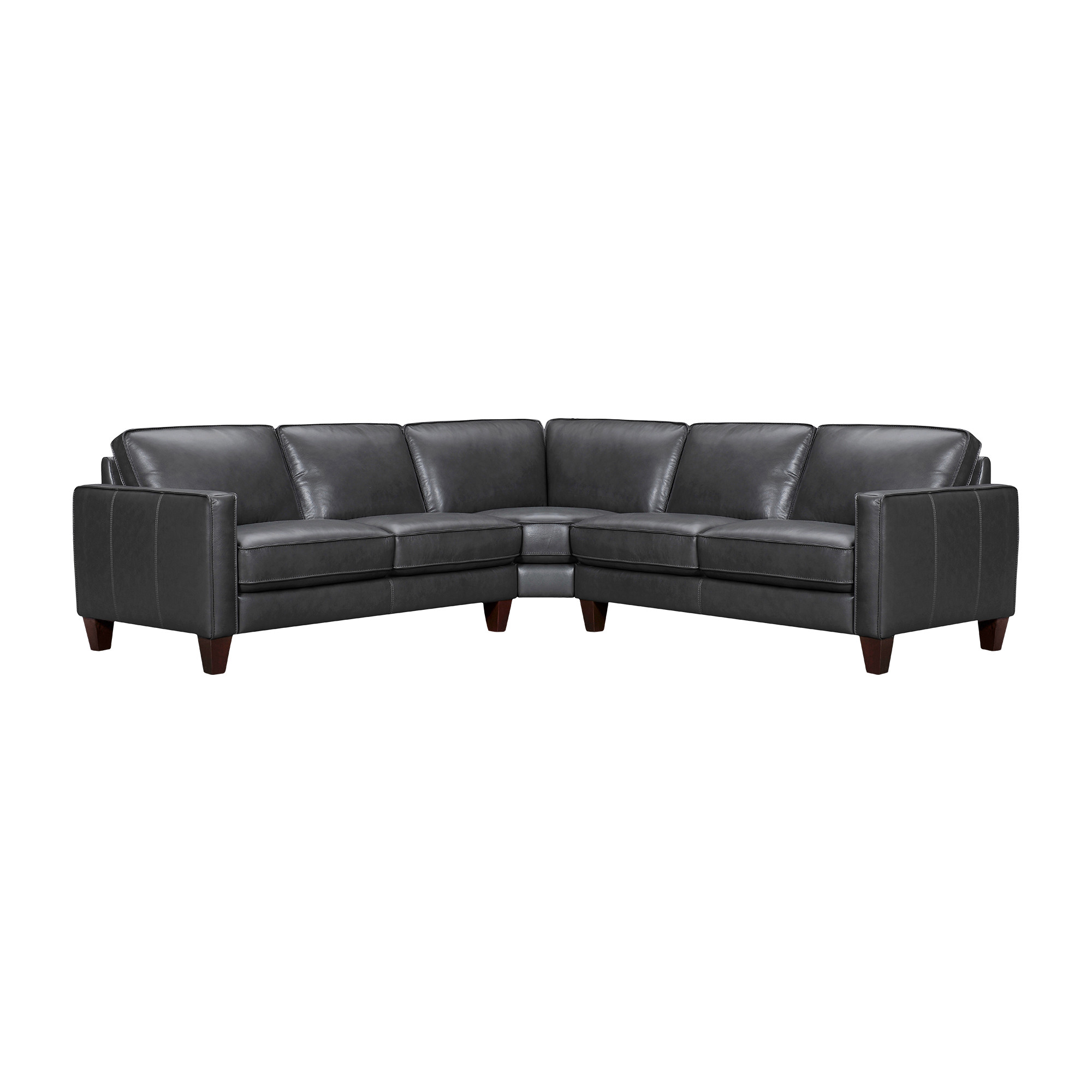 Superior construction from fabulously soft and high-grade leather gives this black leather l shaped three piece corner sectional a leg up on the competition. The premium leather used makes your lounging luxuriously comfortable and adds an elegant appeal to your space. Solid colors give you lots of decorative options and are easy to work into your decor scheme. Square arms offer a comfy place to rest. A great showpiece for your room, this sectional is a must have. 33-inch H x 99-inch W x 99-inch D