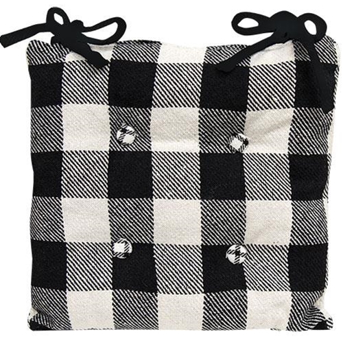 Black & White Buffalo Check Chair Pad is a fabric chair pad with a tufted design and trendy black and white buffalo check pattern. Pad features two ties for adhering to a chair and it complements both country and modern decor with its finish. It is machine-washable and measures 17″ high by 17″ wide.
