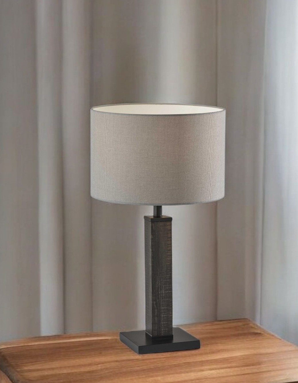 A modern pillar with rustic charm, this table lamp adds architectural flair to your bedside or living area. A reclaimed wood finish is mixed with black metals and a textured light grey fabric shade, creating a style that can fit perfectly into industrial or farmhouse-inspired homes. At almost 28″ high, this lamp is a monumental piece of decor as well as a functional source of ambient lighting. A 3-way rotary socket witch controls a bulb up to 100W or an equivalent CFL. The 3-way rotary socket switch will only work with a 3-way light bulb, otherwise, this lamp will function with a simple on/off switch at its highest setting. All lighting product is either UL or ETL listed, meaning that it has been tested and approved to meet the government-regulated safety standards for the USA. Bulb is not included.