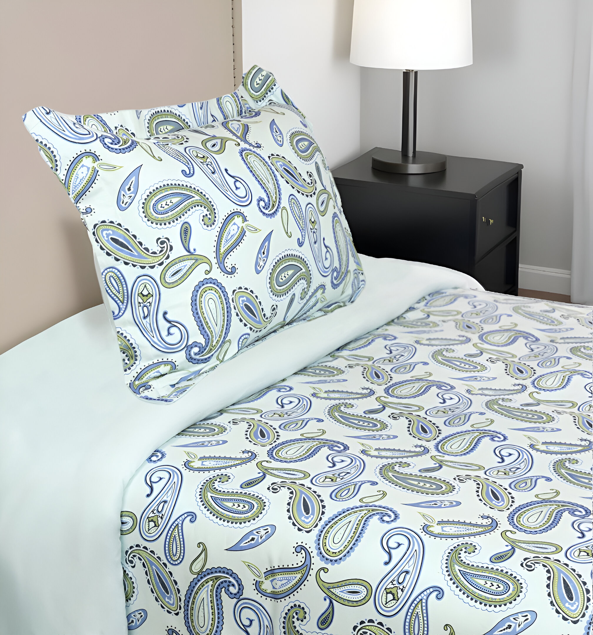 Similar to a pillowcase, this blue and green twin cotton blend 0 thread count washable duvet cover set is intended to encase your duvet or comforter for added protection. With sturdy construction from cotton blend, the covering is designed to be soft and long lasting. The versatile design of this bedding gives you the perfect warmth to give you relaxation, style, and comfort all year long. Twin sizing is perfect for guest room or child’s room. This duvet cover is the perfect accessory for anyone who is in need of a great night’s sleep. Dress your bed in style with this duvet cover. 13-inch H x 10-inch W x 5-inch D