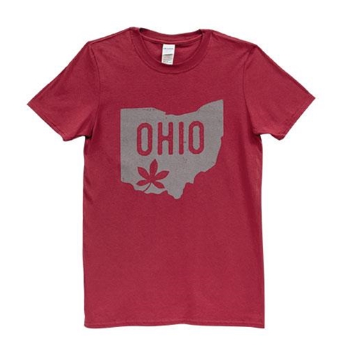 XXL Buckeye Leaf Ohio T-Shirt is a red, 100% cotton t-shirt that reads, “Ohio,” surrounded by an outline of the state and a buckeye leaf graphic. This tee is super-soft, pre-shrunk, and it is sure to be a favorite anytime of the year. Proudly designed and printed in Ohio. Size XXL. Measures 32.5″ high by 26″ wide.