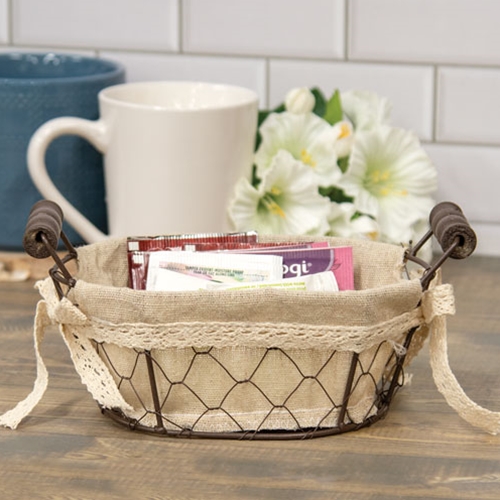 Fabric Lined Chicken Wire Basket w/Handles – 8″ x 5″