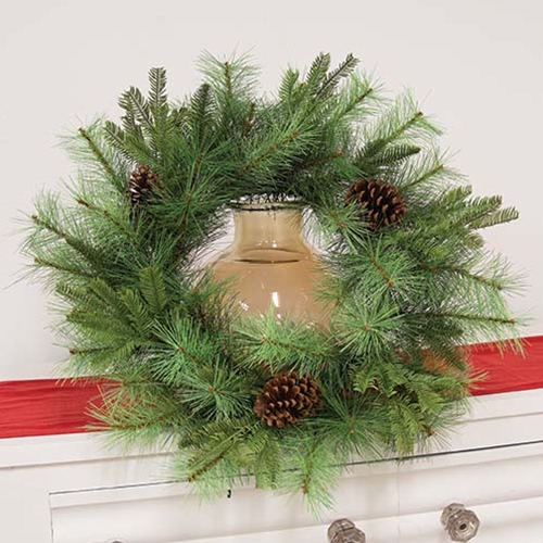 The Forest Path Wreath is a decorative greenery wreath with a natural brown twig-like base. The wreath is filled with long-needle pine greenery and features rustic brown pinecones. Display this wreath on a door or wall to bring a woodland welcome to the home, ideal for the Winter and Christmas season. Measures 12” in diameter (inner) and 26-28″ in diameter (outer).
