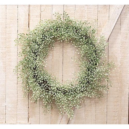 Frosted Green Little Luna Leaves Wreath is a plastic floral wreath perfect for sprucing up holiday decor. Wreath features green leaves that have been dusted with white texture for a frosted look and it has a natural twig base. Wreath looks great on a covered door, porch, or hung above a mantel or couch. Measures a 12″ inside diameter and a 18-20″ outside diameter.