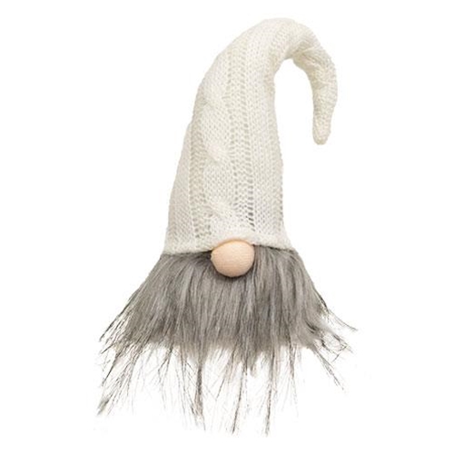 Lend a touch of whimsical holiday magic to your Christmas displays by showcasing the Medium Plush Santa Gnome w/Cream Hat on a tabletop or fireplace mantel. The decorative winter doll is made of soft gray fluffy fur. His round peach nose peeks out from under his cream-colored knitted Santa hat. The hat is pointed and has a posable interior wire that lets you style it to your liking. A weighted bottom keeps him upright on flat surfaces. Measures 12″ high and is 3″ in diameter.