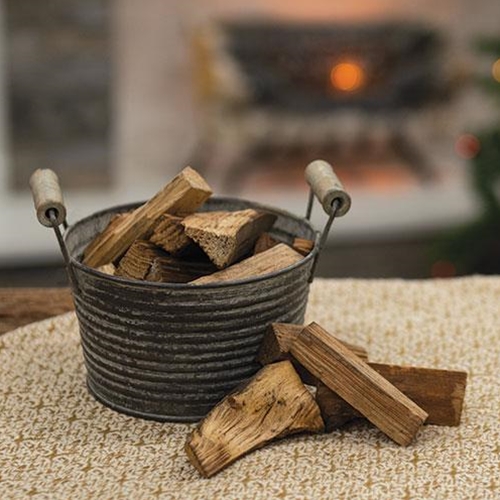 Mini Graywashed Washtub with Wood Handles is a weathered, galvanized metal basin with corrugated sides and a pair of wood-grip handles. This piece is perfect for displaying soaps or bath bombs in a country home, used for organization around the office, or as the base for a unique centerpiece. Measures 5.25″ diameter by 3″ high (4″ high including handles).