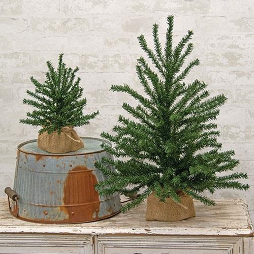 The Pine Tree is a decorative freestanding tree featuring flexible branches with dark green faux pine needles. The base of the tree is wrapped in burlap fabric for a rustically decorative detail. The tree measures 2 feet tall, making it the perfect addition to a fireplace hearth, tabletop, or corner of a small-scale space in the home. This tree can be displayed on its own during Christmas and Wintertime, or can be paired with decorative ornaments, garlands, and lights for a more festive look.