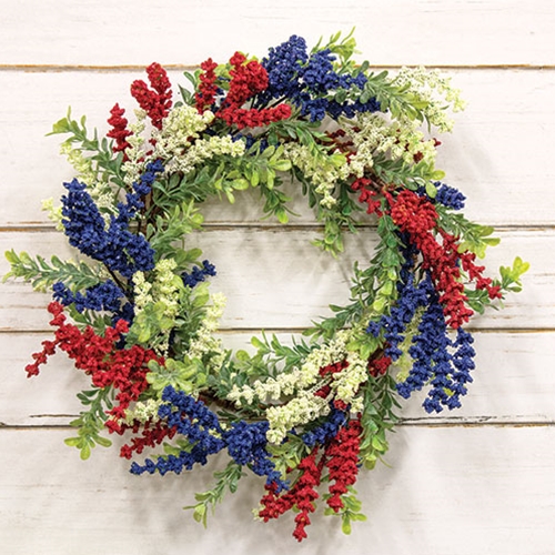 Red, White & Blue Heather & Boxwood Wreath, 18″