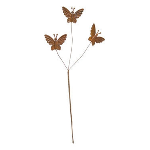 This Rusty Butterfly Pick will be the perfect touch to any country garden, centerpiece or arrangement! The pick features three 2″ embossed metal butterflies with a rusty, aged finish. The butterflies are mounted on wire and can be moved to match your arrangement perfectly. The pick is 12″ tall.