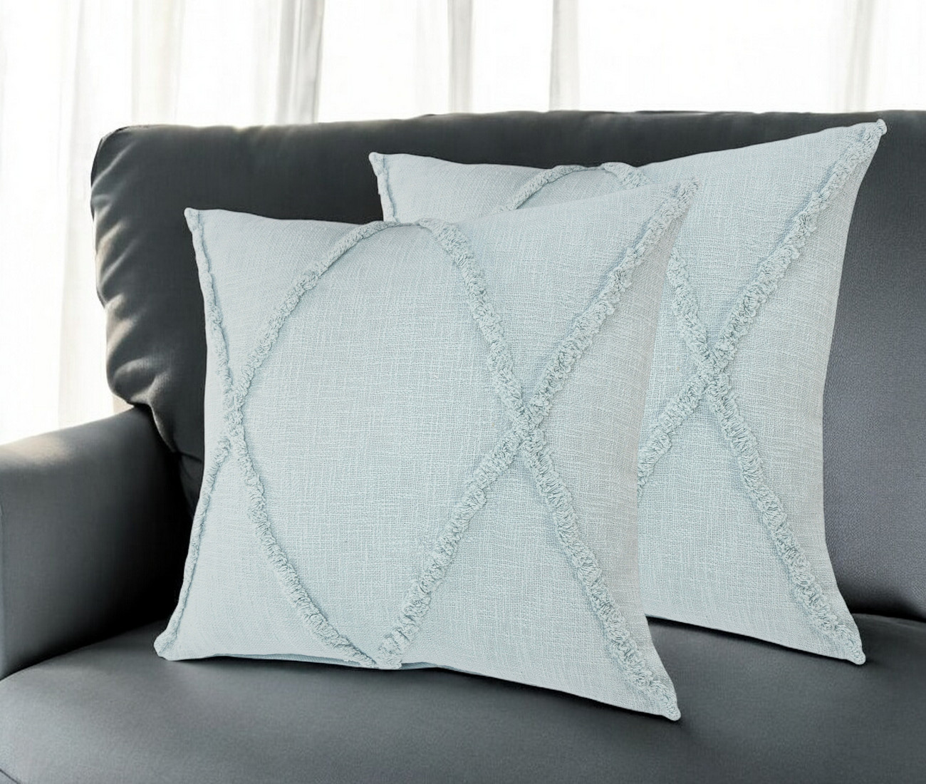Unique and decorative, this comfortable set of two blue geometric cotton throw pillow with fringe will leave a lasting impression. These blue hued pillows represent quality construction, expertly made from durable cotton that is not only long lasting but super soft to the touch as well. For anyone that loves to decorate or accent their space with color and texture. Decorative pillows are a great way to change up the look and feel of your space easily and quickly. 18-inch H x 18-inch W x 4-inch D