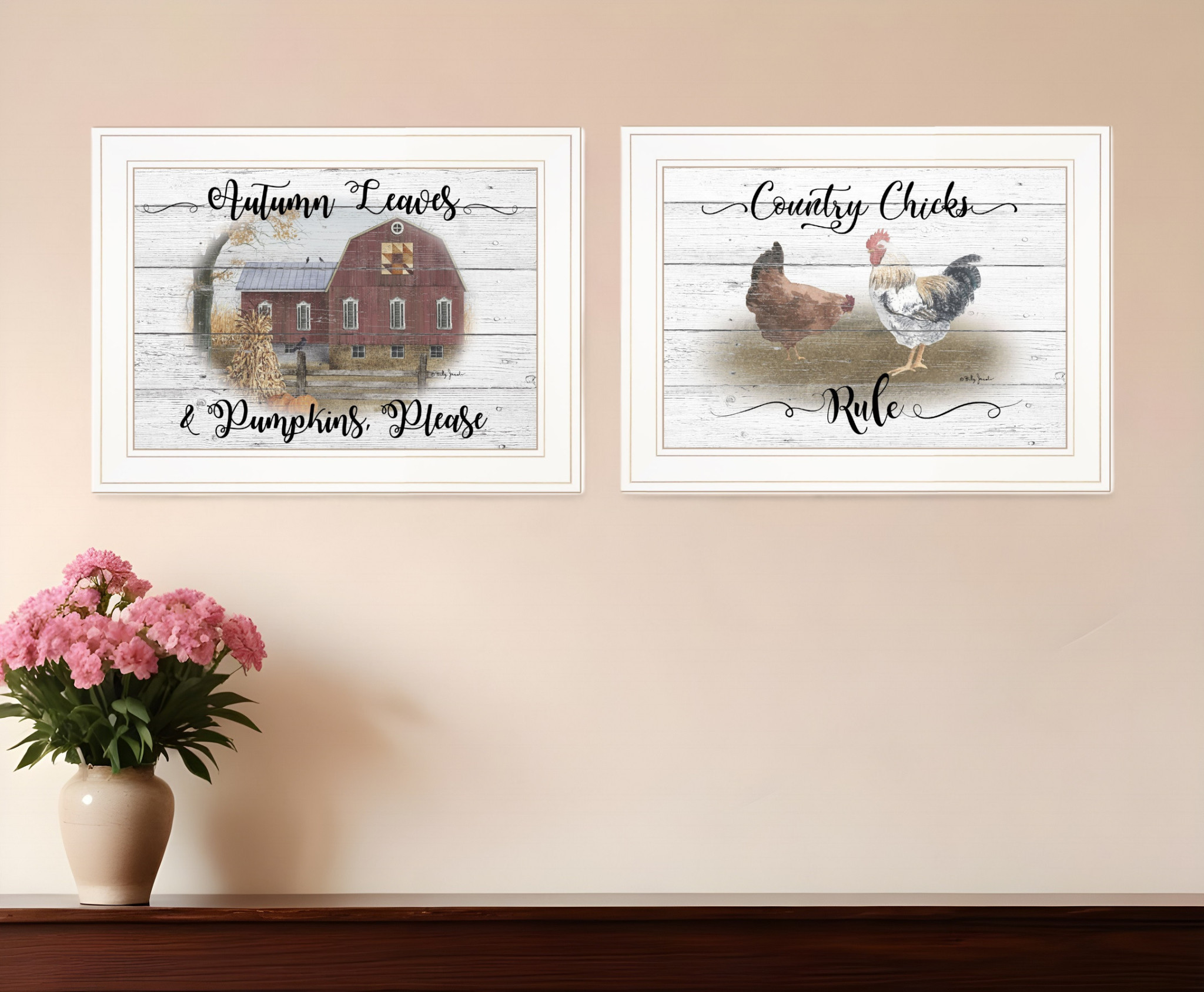 This set of two country living white framed print wall art will add a beautiful decorative accent to your decor. This print is a visual artistic expression that allows you to decorate your space in style. Reproduced for you on paper, this hanging decorative accent will be a trendy and fashionable way to dress your walls. Hang on your wall to add some up to date fashion and decoration. Instantly liven up your space with this art that brings color and dimension to your walls. 15-inch H x 19-inch W x 1-inch D