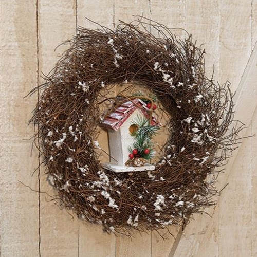 Easily accent any holiday look with the Snowy Angel Hair Vine Wreath. The deep brown of the vine helps to pull out the beautiful reds, greens, and whites of the season while the frosted finish sets the mood of a winter wonderland. Pair this wreath with festive florals in an entryway or prominent place to pull together a rustic Christmas look! Diameter is 10″ and the inner diameter is  6.5″.
